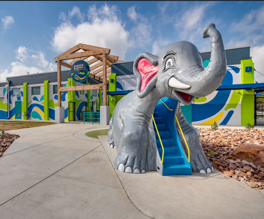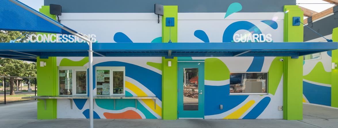 Our landscape architects also managed and facilitated community engagement throughout the design process to share information at key intervals while building support for the project. This included developing a new name and theme for the facility, the study of various thematic characters for branding, and establishment of color palettes to support the new theme. The aquatics center is slated to open on June 5, 2021.