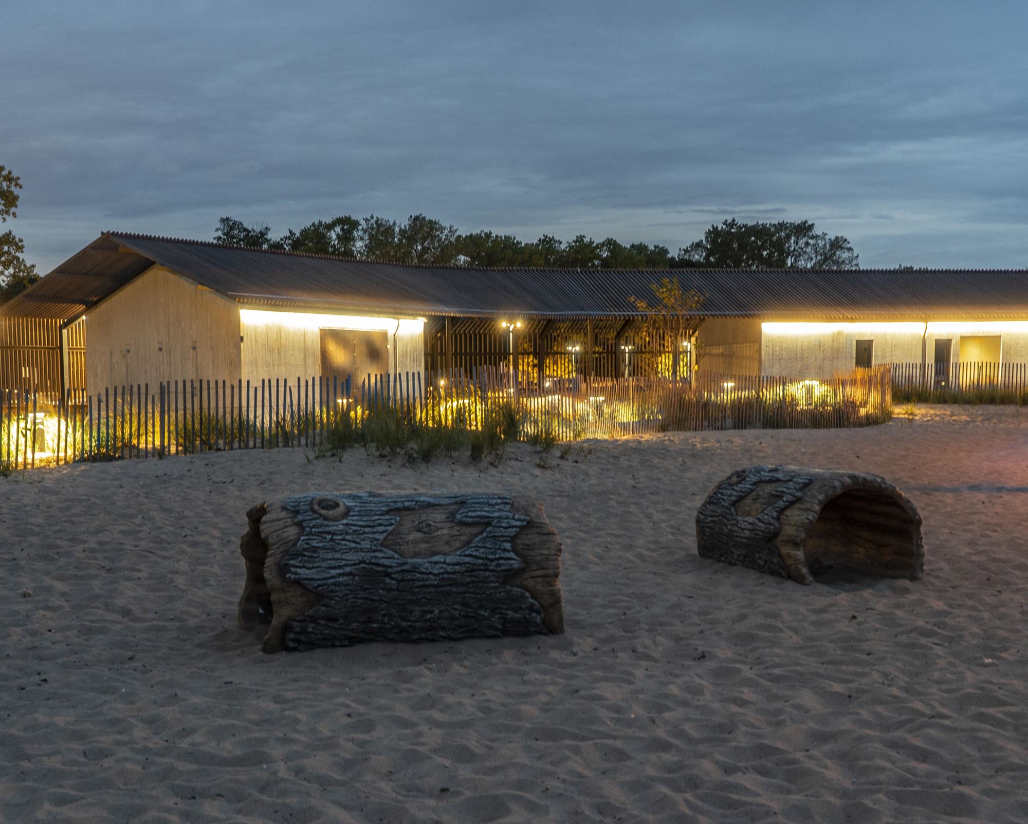Inspired by the historic dune landscape of the site, both the architecture and landscape are an extension of this sinuous beach vocabulary.