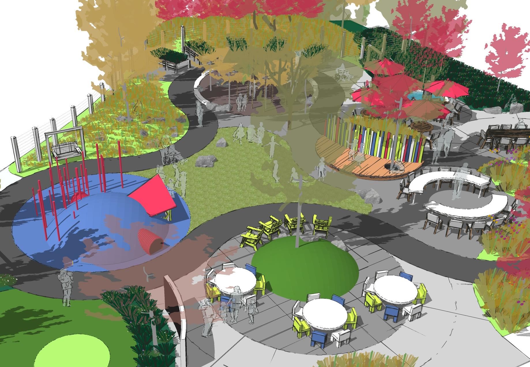 The site design at Mission Hills provides an innovative intergenerational space providing opportunities for interaction, learning and healing.