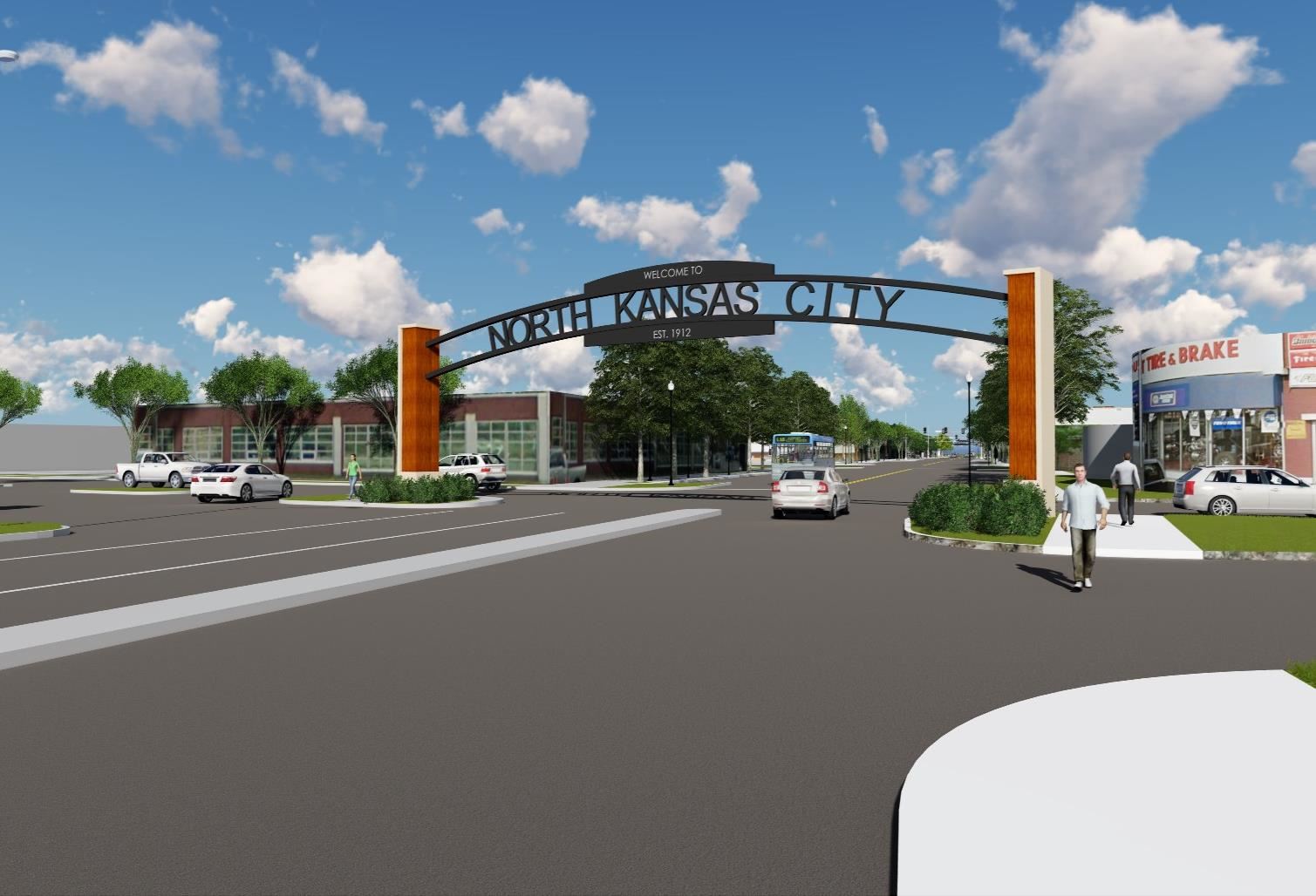 This gateway feature welcomes people to North Kansas City, and will soon be complimented by additional wayfinding signage and entry sign features.