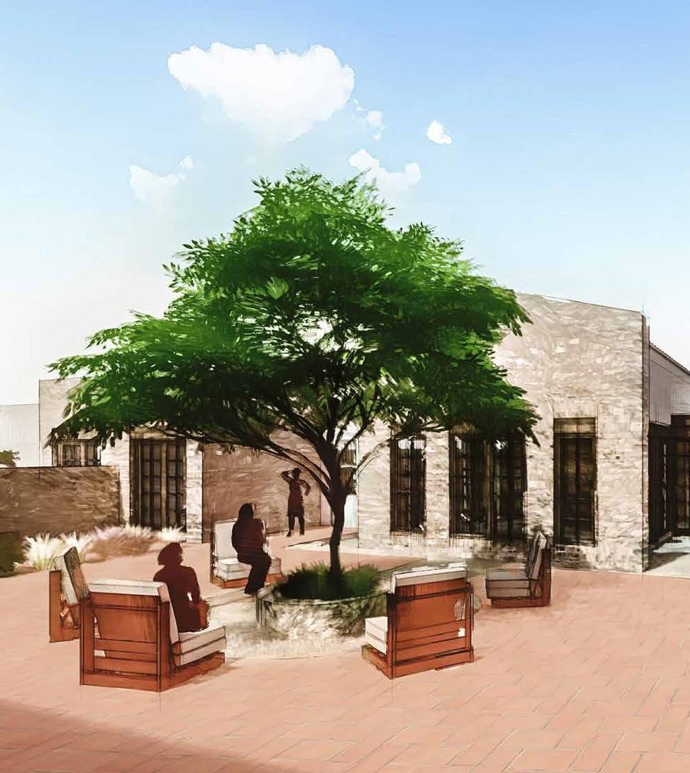 The buildings and their connections to the outdoors create community spaces that enhance the natural landscape of the place by nesting in the contours of the site. The proposed landscape design will reinforce the aesthetics of the site through the selection of species that relate to the native plants of the southwest.