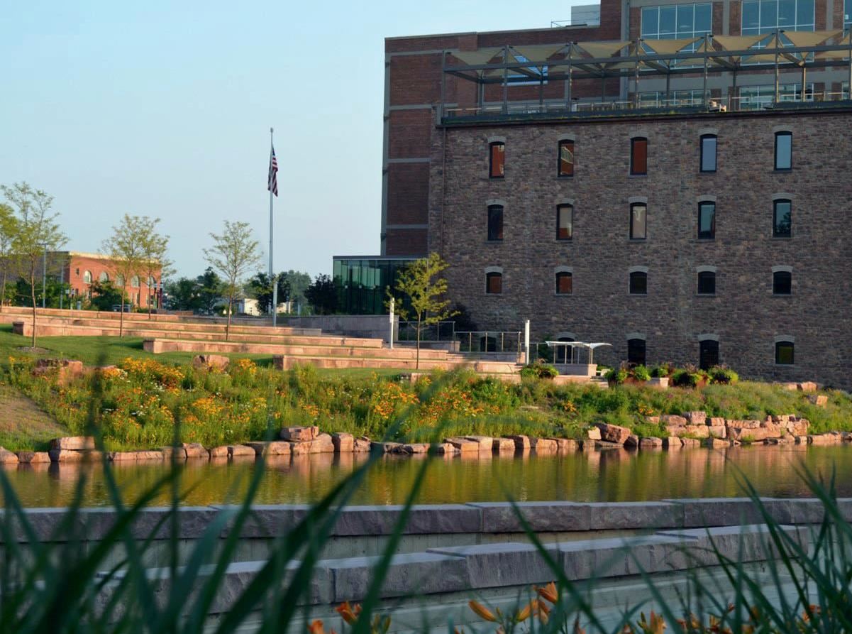 The project included a complete re-imagination of this under-utilized site located adjacent to the recently developed Downtown River Greenway. Confluence led the planning and design of all site improvements, including collaboration with the building project architect and City representatives. The results include an outdoor space that fosters creativity, connection and collaboration between employees, the public and the revitalized riverfront environment.
