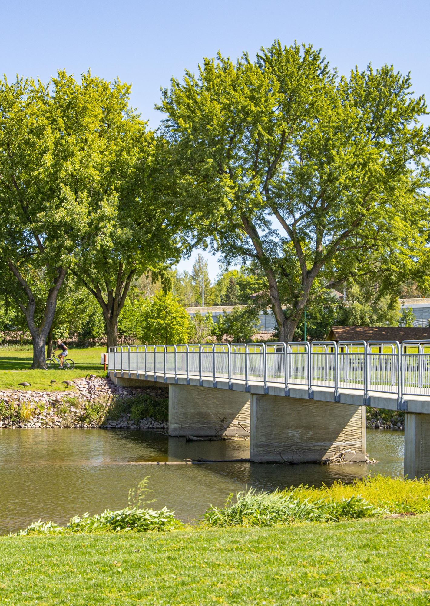 Rotary Park improvements, completed in conjunction with adjacent road projects, relocated the park across the Big Sioux River while expanding and improving amenities and access to the greenway bike trail loop.