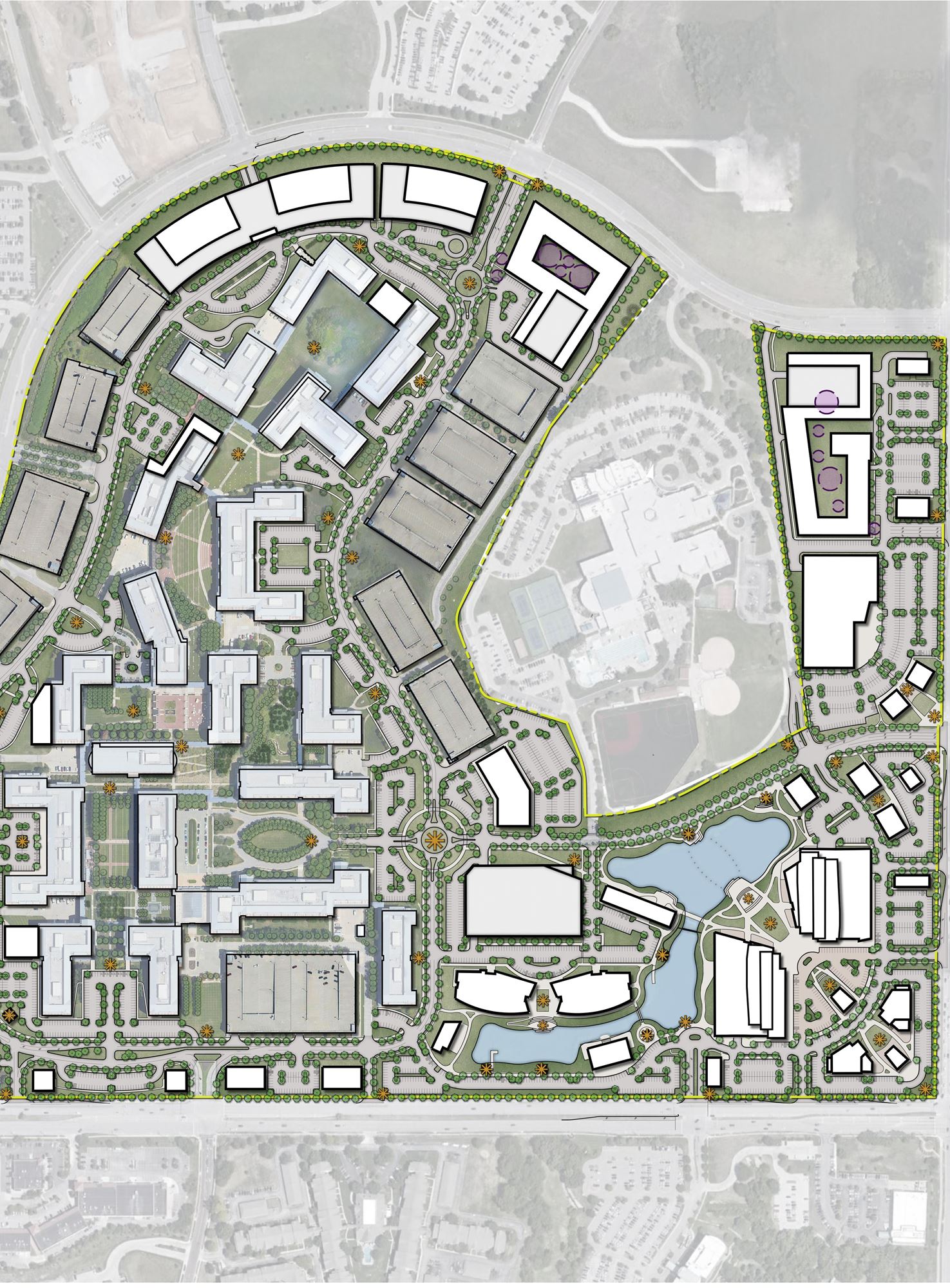 As the second-largest office campus in the country, this institutional office complex was originally crafted to serve the needs of the Sprint Corporation. Our team is collaborating to transform the physical environment, amenity offerings, and functional configuration of campus uses to include new commercial, hospitality and residential components. The program introduces retail, food and entertainment opportunities throughout the campus to create an attractive, connected and energized modern work environment. Anticipated features include the integration of smart technologies for stormwater capture/management and re-use, an interactive campus-wide app for hospitality, transportation and social connectivity, and the provision of numerous site amenities to create a welcoming and engaging atmosphere.