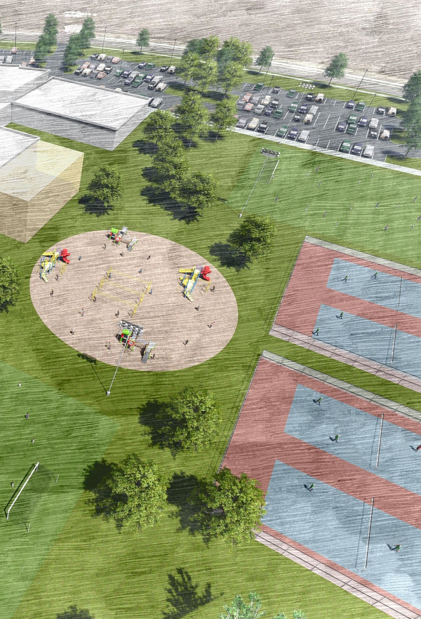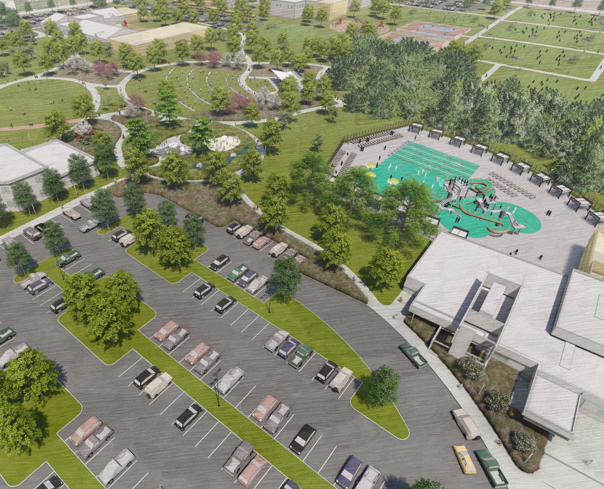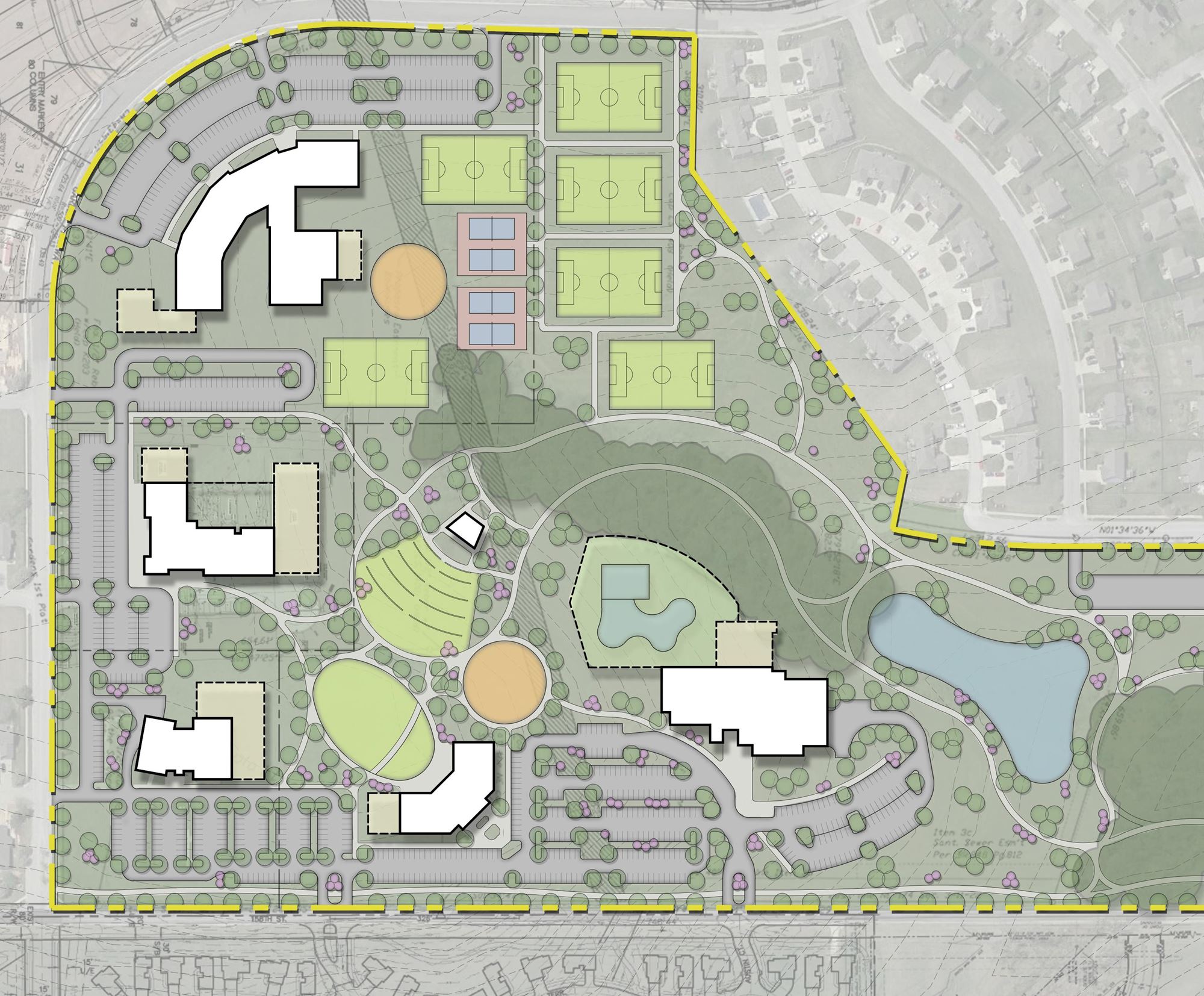 The planning effort also assisted the City in selecting a preferred site and negotiating with the School District for placement of the elementary school in accordance with the master plan recommendations. Opportunities for enhanced community connectivity, shared parking and site resources, and utilization of a combined stormwater improvement project to serve the entire property were also integrated into the plan recommendations.