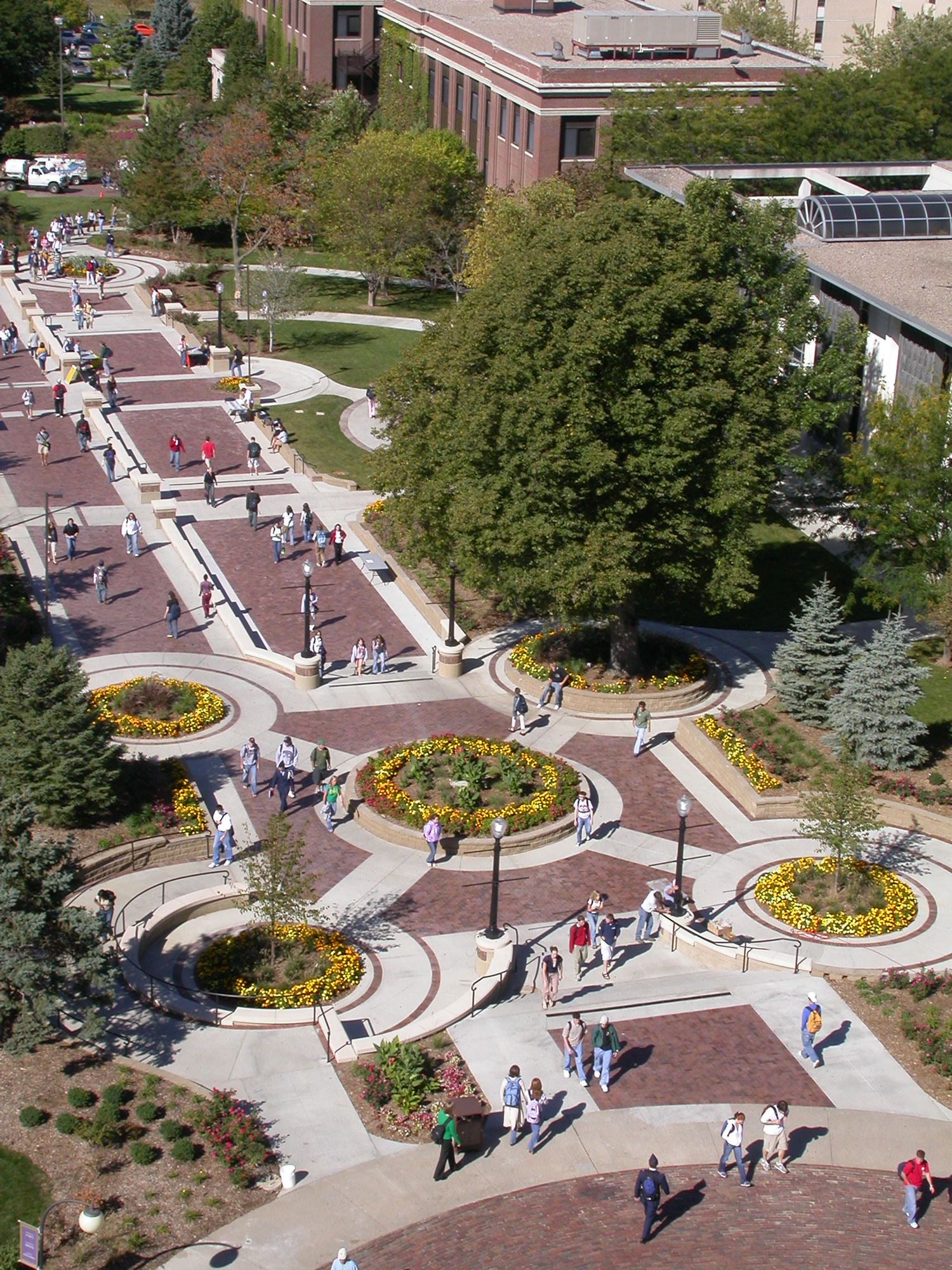 The design intent for street revitalization was to create a usable outdoor space at the historic core of the campus to encourage social interaction and afforded opportunities for respite.