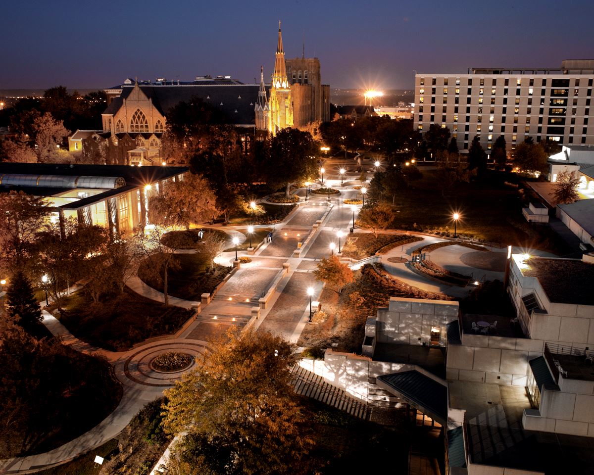 Our team led the revitalization of California Street, a former streetcar route in the historic core of the Creighton University campus which was challenged by a continuous 5% slope, iron streetcar rails in the walkway, and deteriorating cobblestone pavers. Our team’s design for the sloping, linear space was integrated a series of landscaped terraces that transformed the walkway from a simple movement corridor into an exciting sequence of usable social spaces.