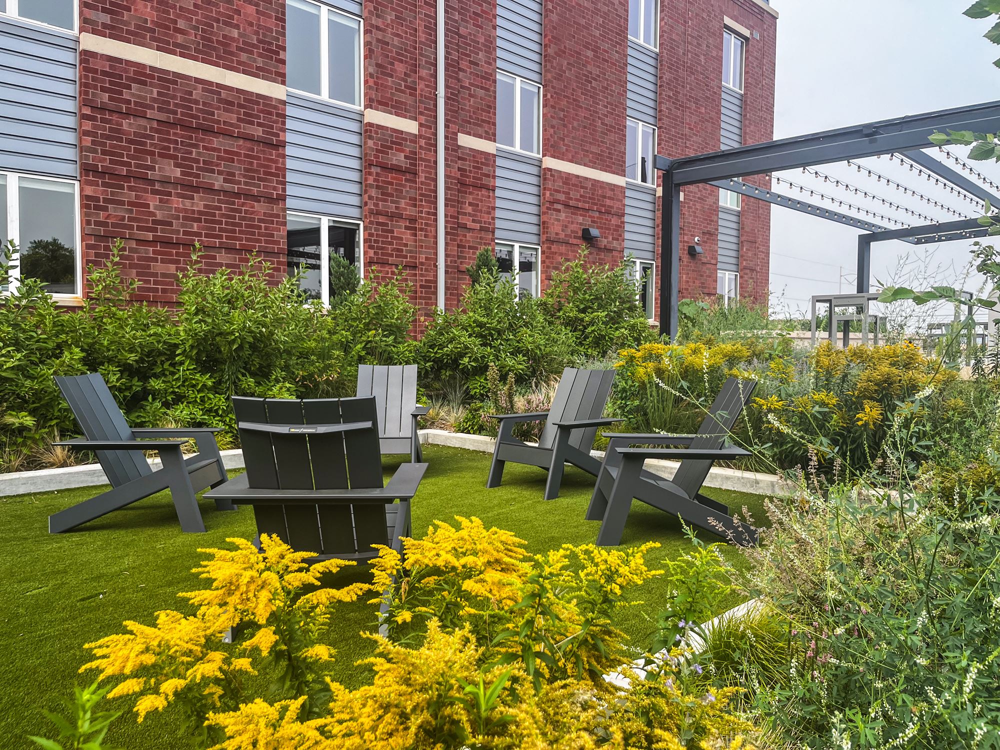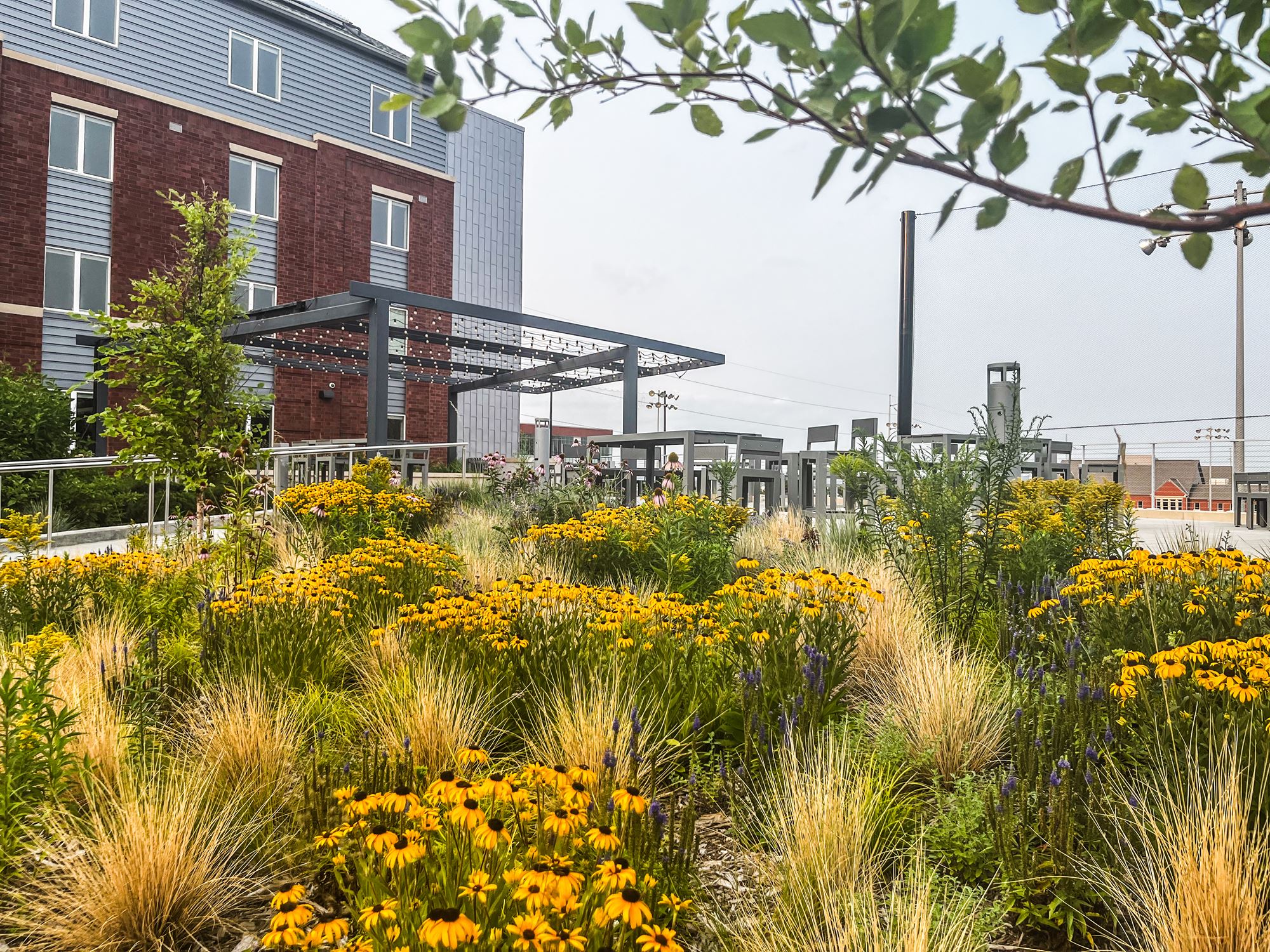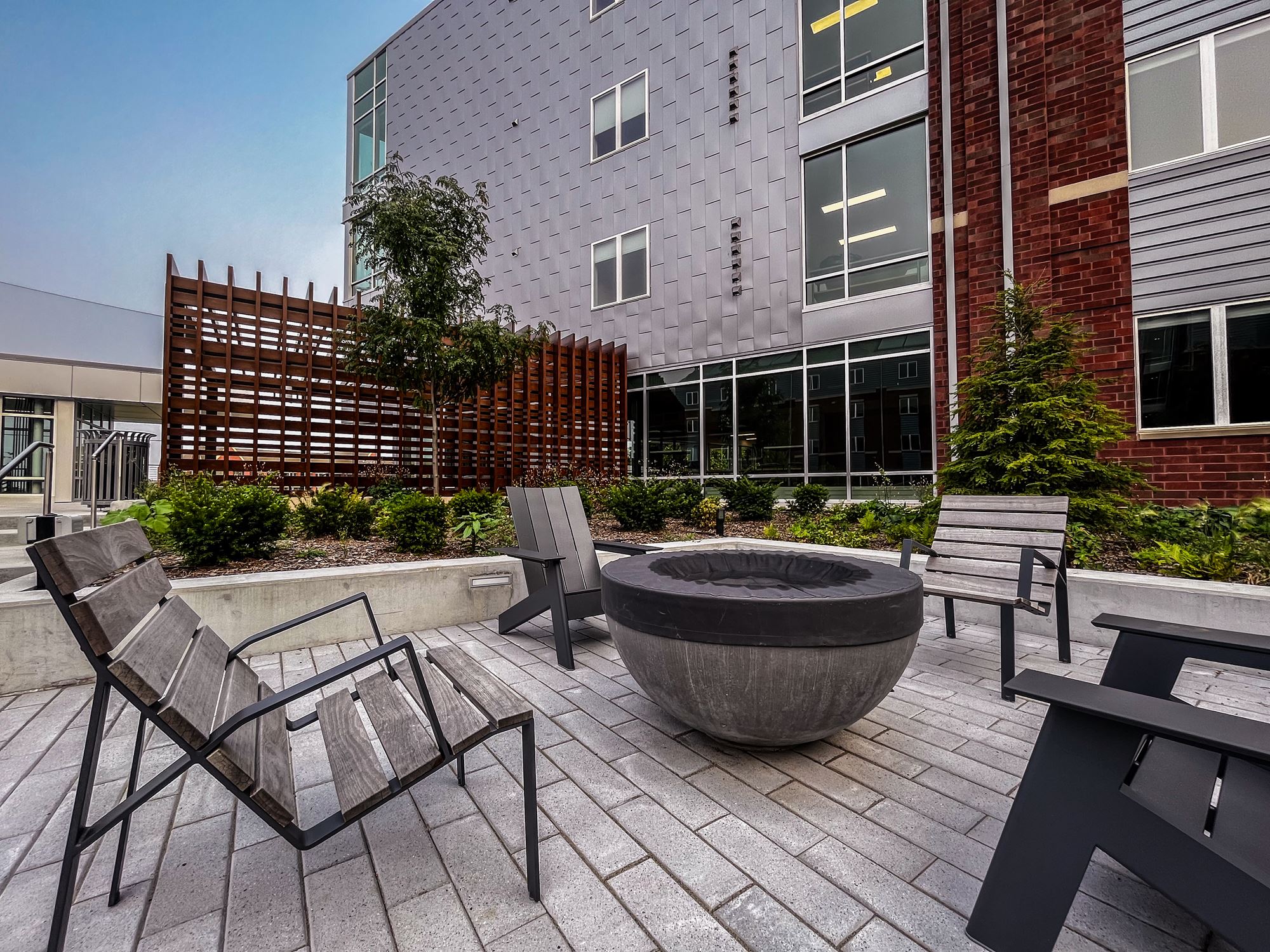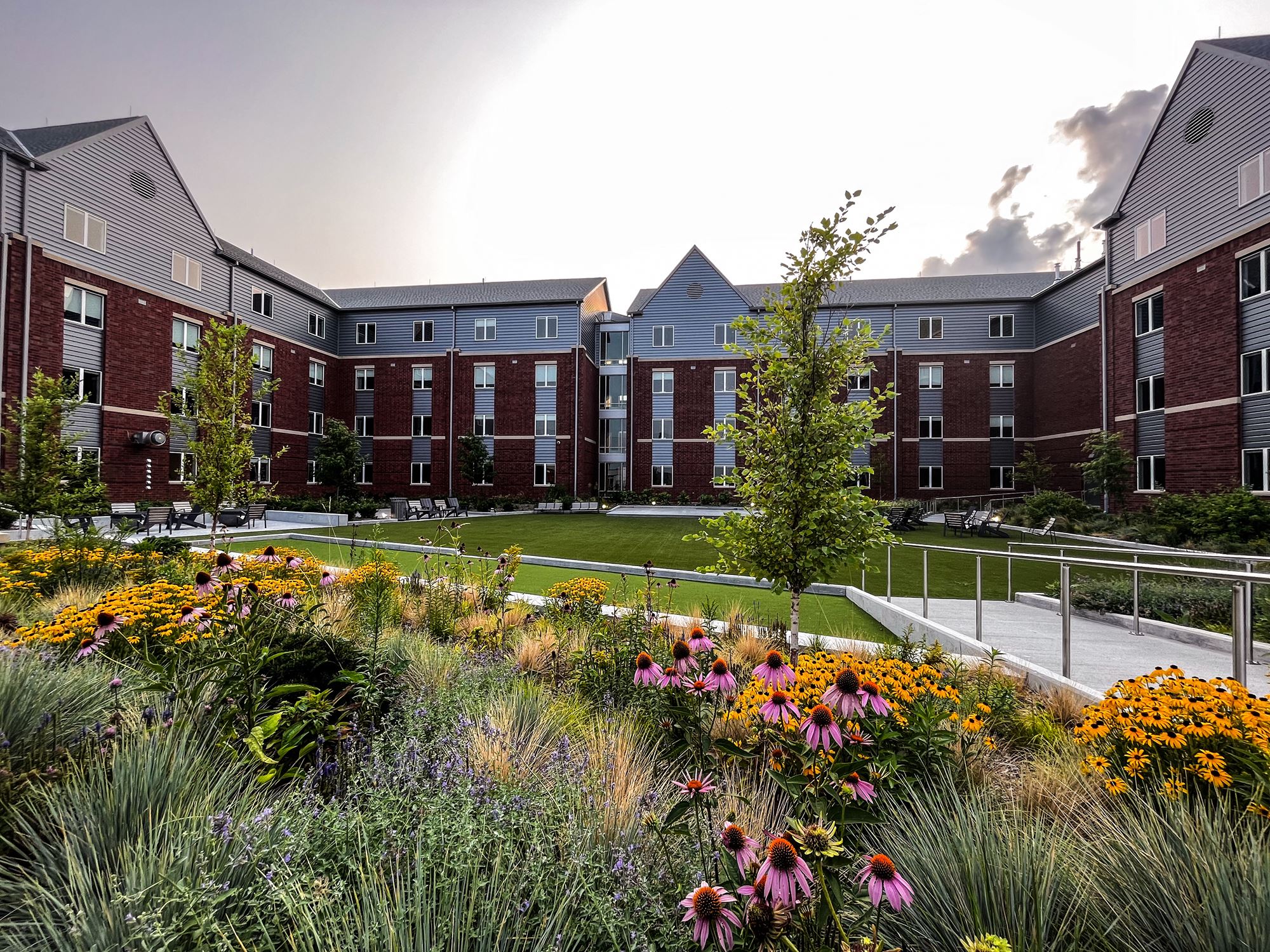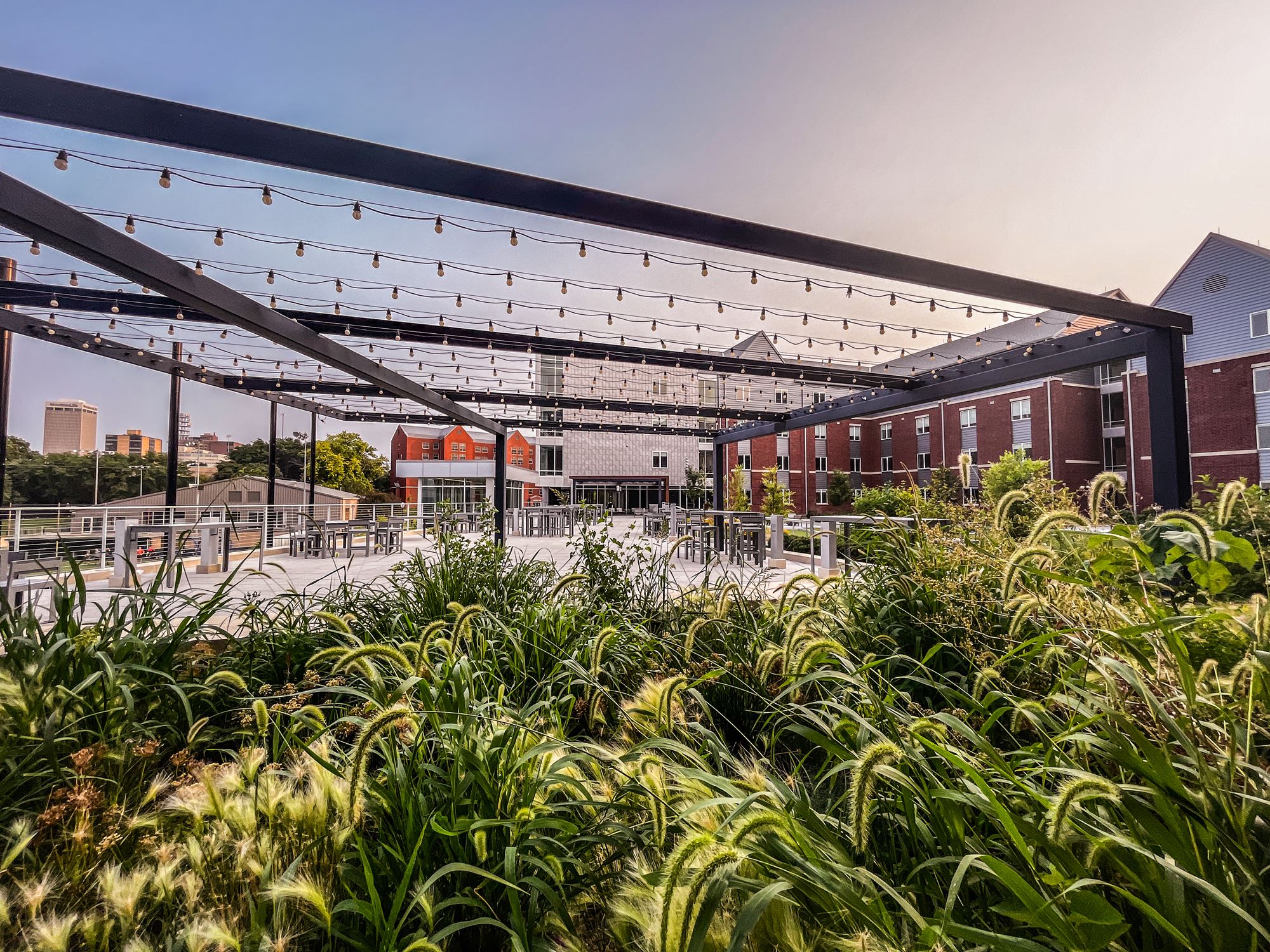 In alignment with our Campus Master Plan, future additional residence halls will be constructed and configured to frame a new main residential quad. Quality outdoor space is a primary campus focus and the rooftop deck provides a wide variety of active and passive spaces for students.