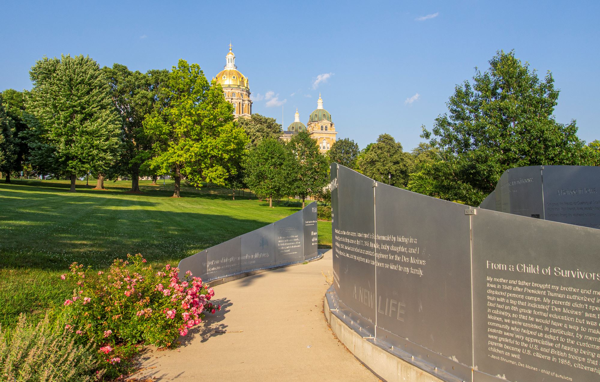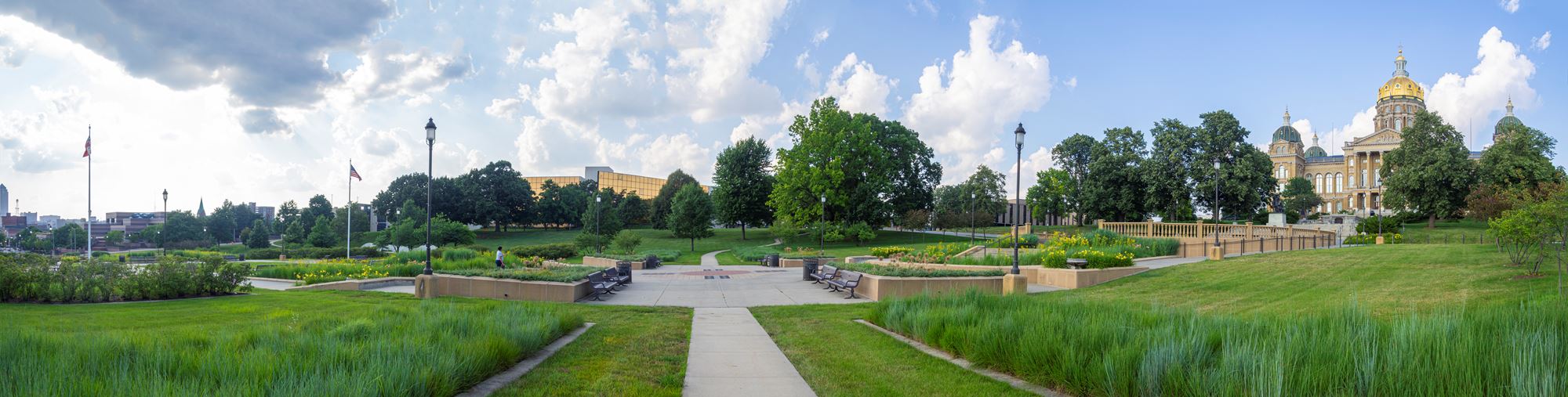 Re-imagining the form and function of the existing grounds involved replacing existing vehicular infrastructure with a master plan for a 10-acre green sanctuary allowing visitors to assemble, picnic, walk or demonstrate. Confluence collaborated with Capitol staff to lead a facilitated planning process building upon the strengths of the site's existing formal French Plan and Beaux Arts style. The new design integrates plantings native to the State of Iowa while crafting spaces supporting a variety of experiences and activities - from quiet individual contemplation to hosting thousands during large community events.