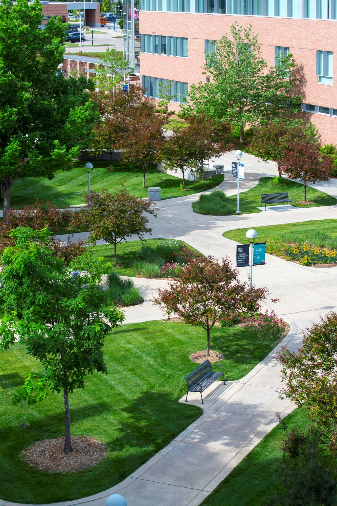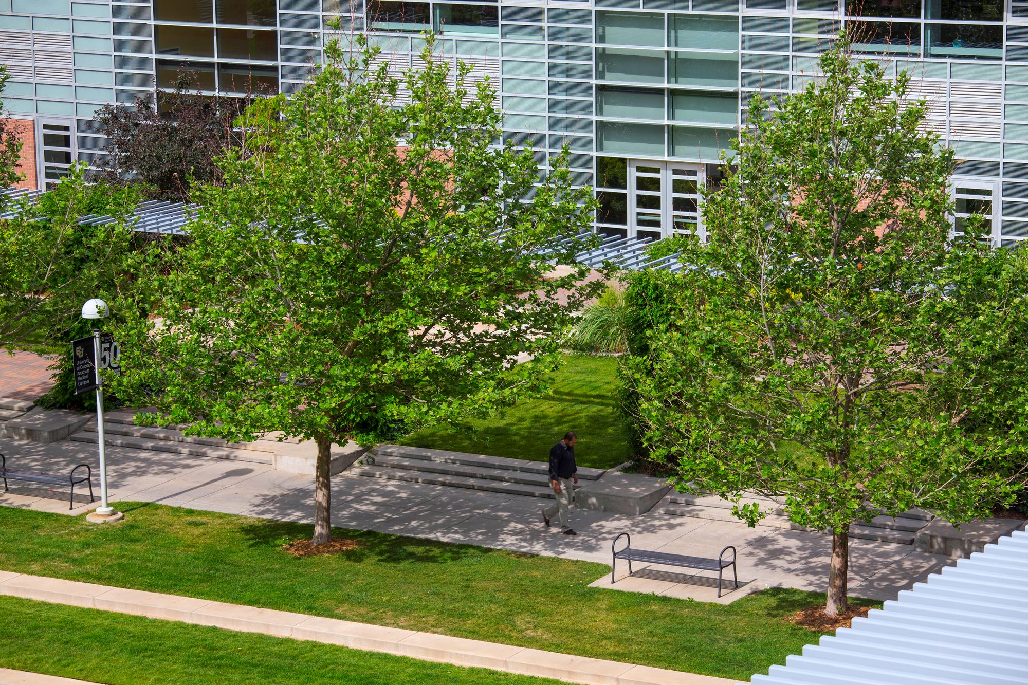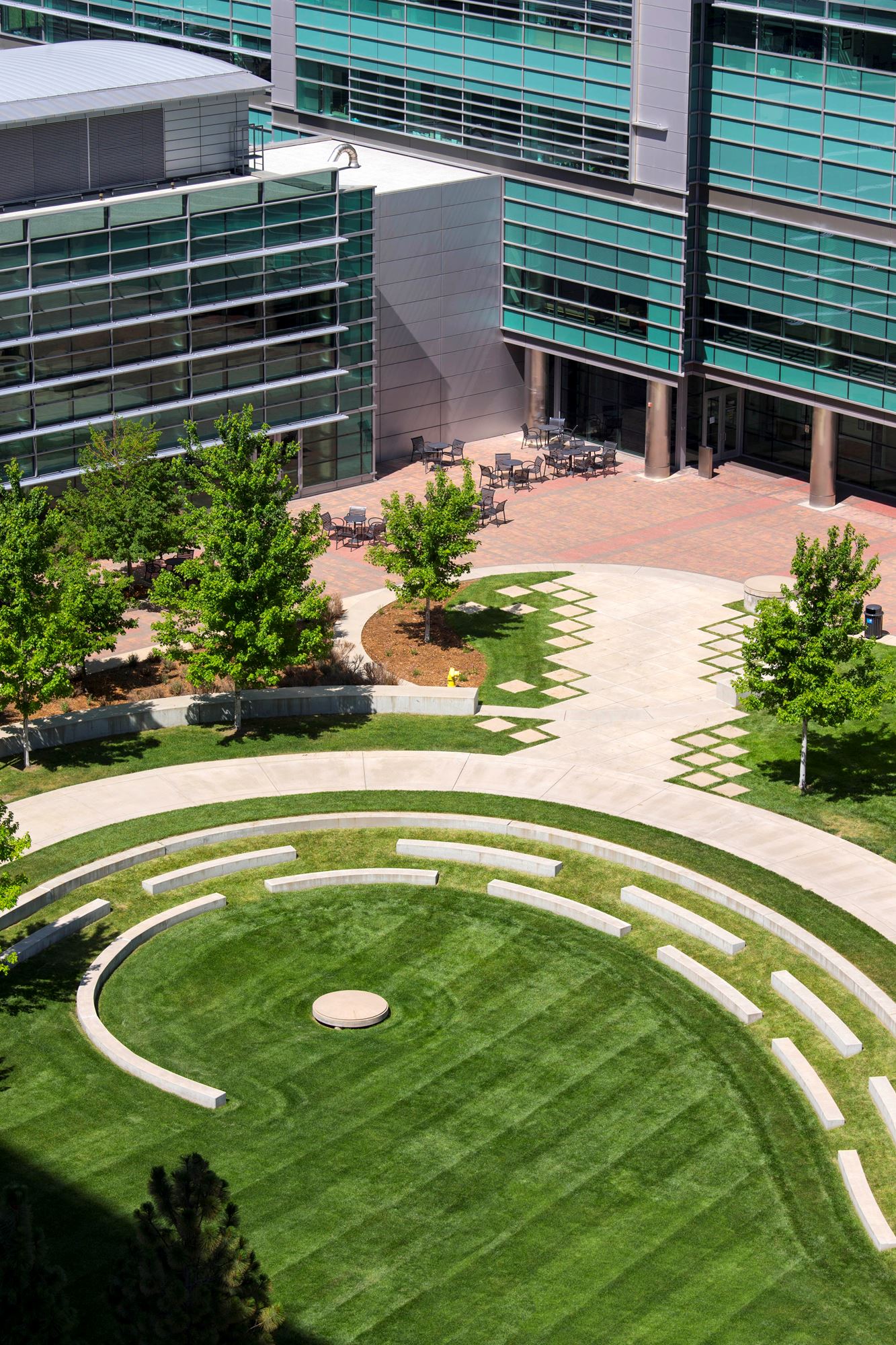 The landscape architecture serves as the "glue" holding together the monumental architecture of the surrounding medical, research and educational facilities. Confluence led the implementation of the campus landscape architecture framework including the 15-mile circulation network, three campus quadrangles, 10,000 parking stalls, thousands of planted trees and over 60 acres of sustainably designed open spaces, as well as providing landscape architecture for over 70 projects during campus build-out.