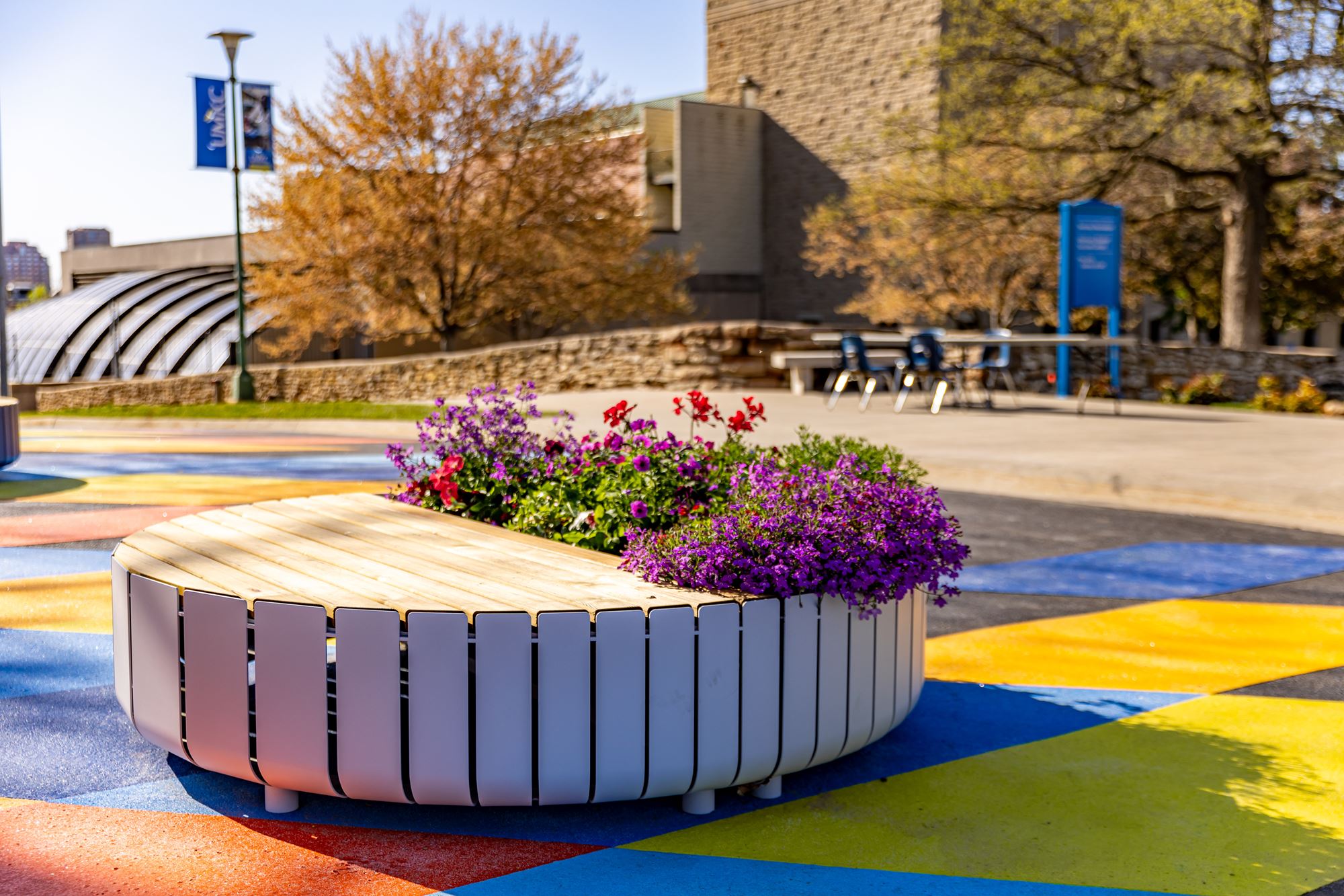At the heart of the promenade lies ‘Roo Plaza,’ a central gathering space at the top of the hill. On the west end, new seating provides direct access to the UMKC Student Union and Swinney Recreation Center. With a grand opening in April 2025, the reimagined 51st Street Promenade has become a welcoming and lively destination for students, staff, and the broader community.