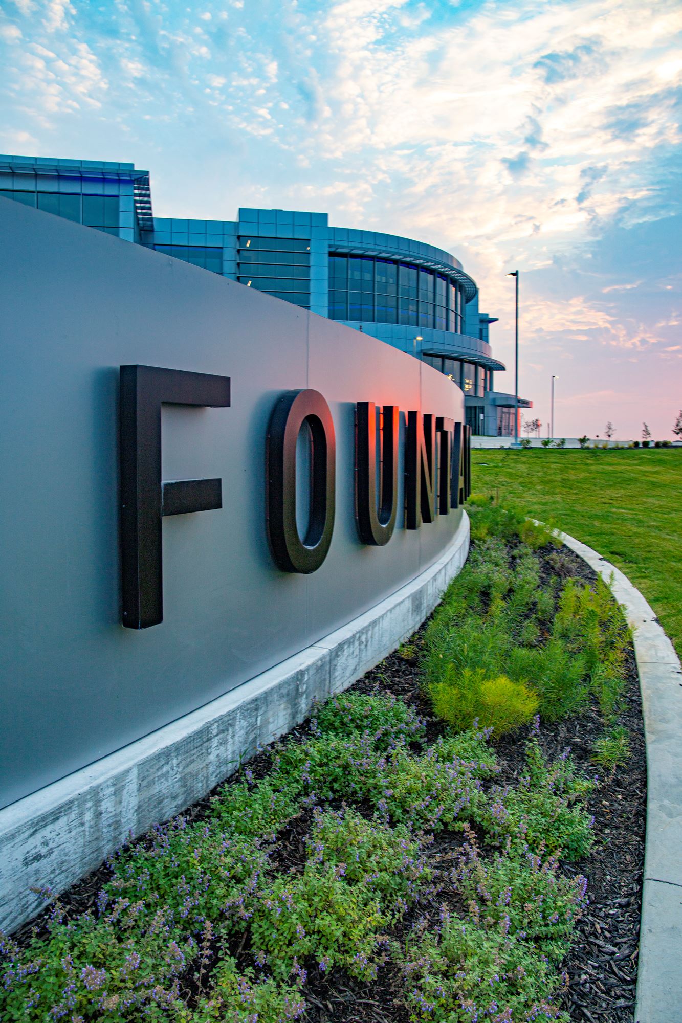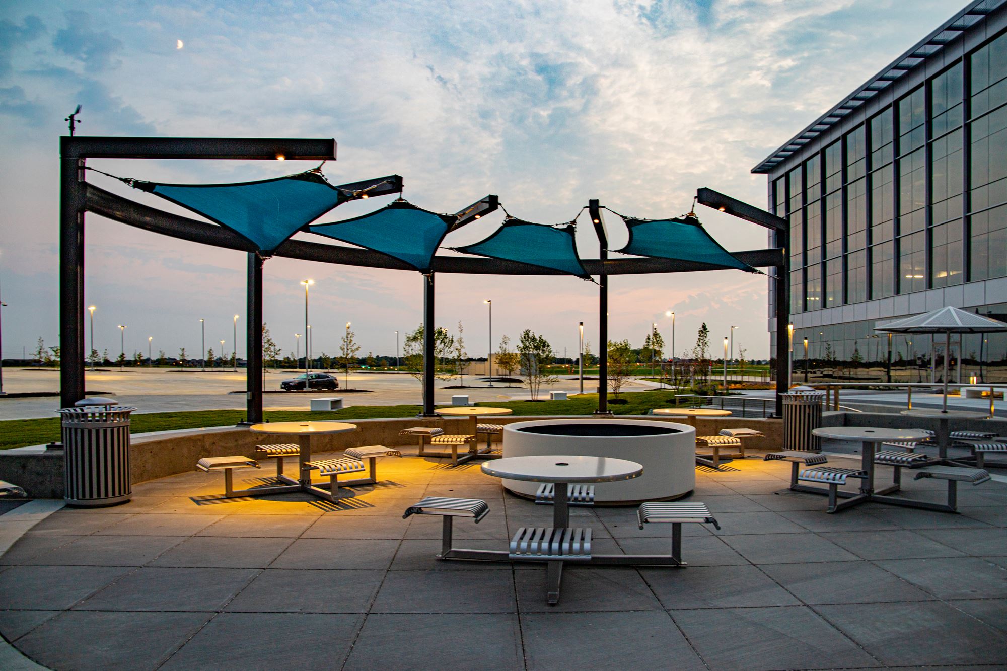 Confluence was retained by R&R Realty Group to design the main entry, central plaza, roof terrace, and amenity fountain for their new Waterford Office Building as part of the Fountain Ridge Office Park. The owner wanted a sequenced entry plaza that welcomed tenants and visitors to the complex. The site’s outdoor patio is amenity-rich with a variety of seating, shade and entertainment options, including an amphitheater to encourage people to get outside and engage with one another. The site also features a 34-foot wide, 16-foot tall fountain to create a dramatic statement for the office campus. The fountain holds 7,500 gallons of water and is equipped with LED lights that perform an artistic light show at night.