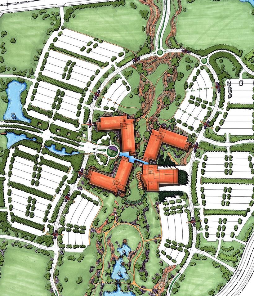 Confluence led and facilitated a multi-disciplinary master planning process that included a three-day charrette, yielding an overall design direction for the Master Plan. The design integrates a system of bioswales, water bodies and landscape areas to properly convey a majority of the site stormwater while allowing for future additional campus growth and development.