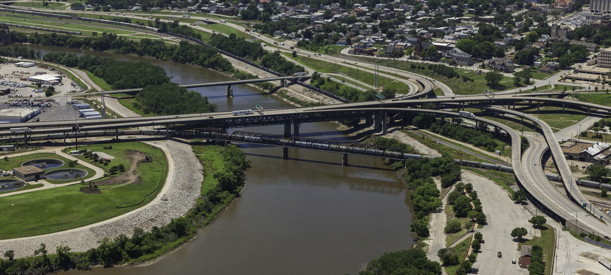 Comprised of a series of bridges and connections, this viaduct extends over the West Bottoms area and provides a vital connection between Downtown Kansas City, Kansas and Downtown Kansas City, Missouri.