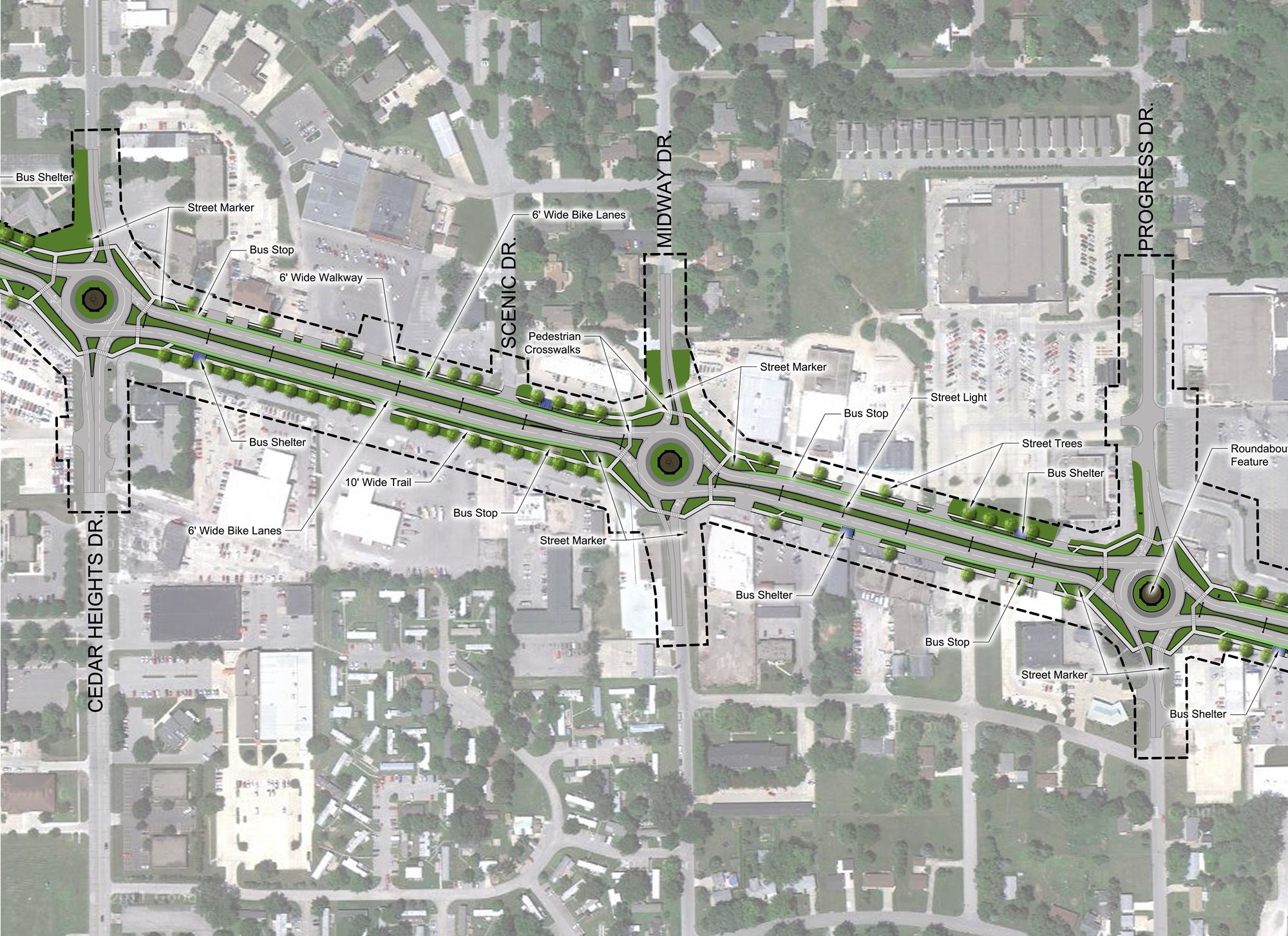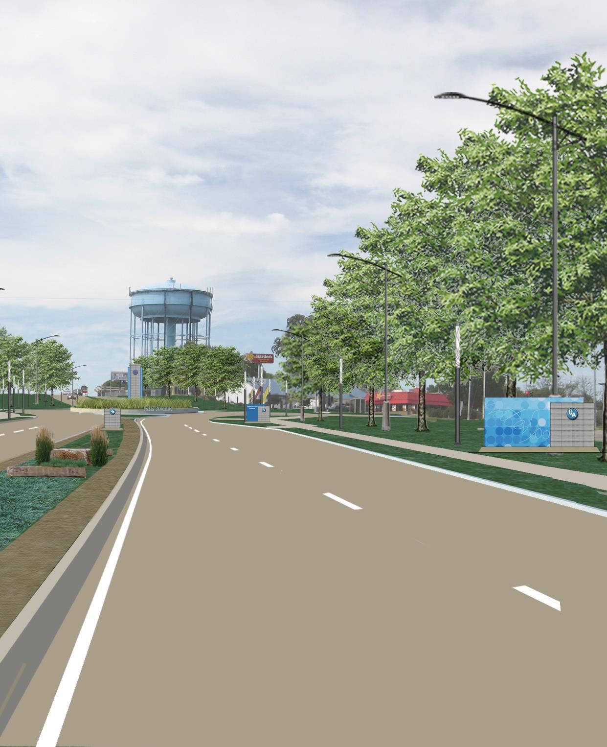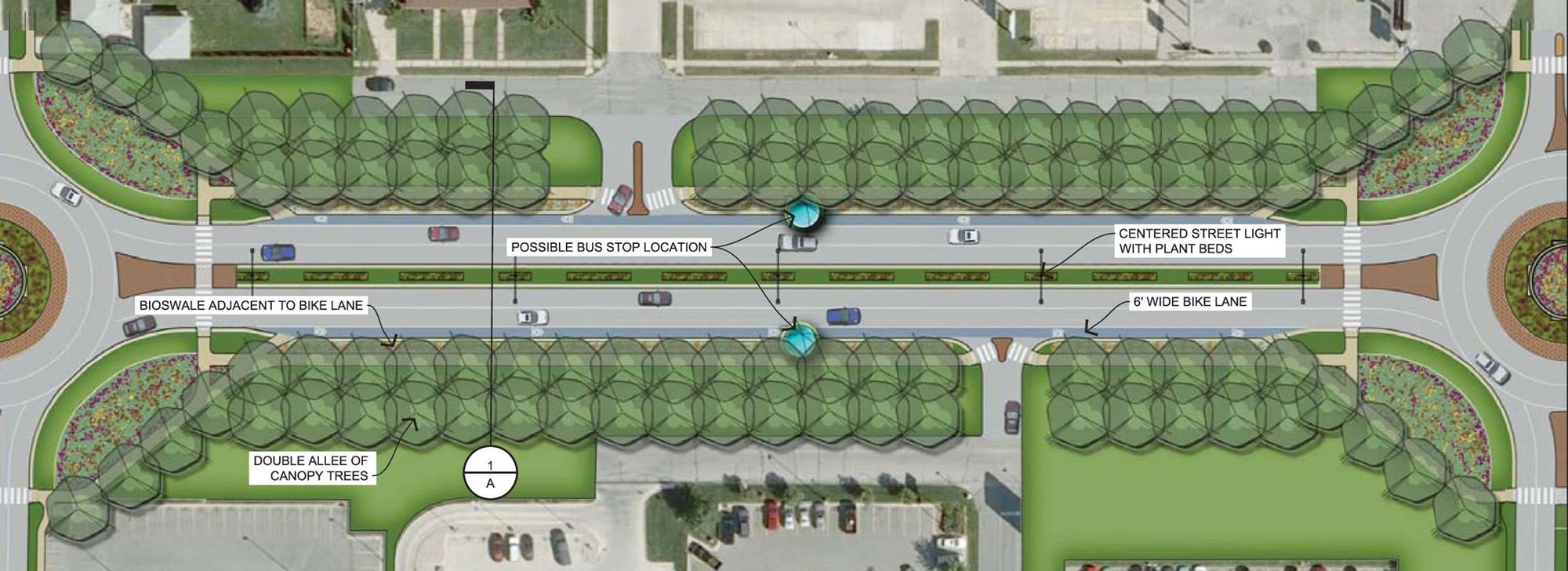 Confluence has been a key partner to several agencies throughout this project's duration. Our role in the initial phases of design included a streetscape Master Plan - introducing several features including roundabouts with iconic sculptures, landscaped bio-swales and street tree plantings to bolster the corridor’s greenway appearance.