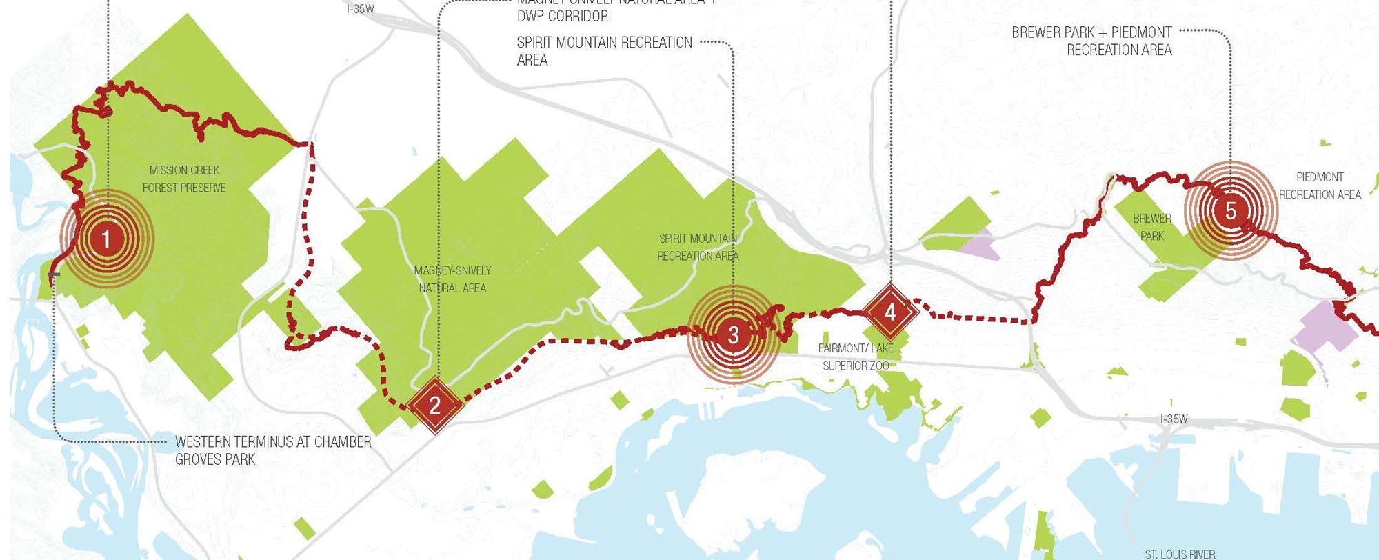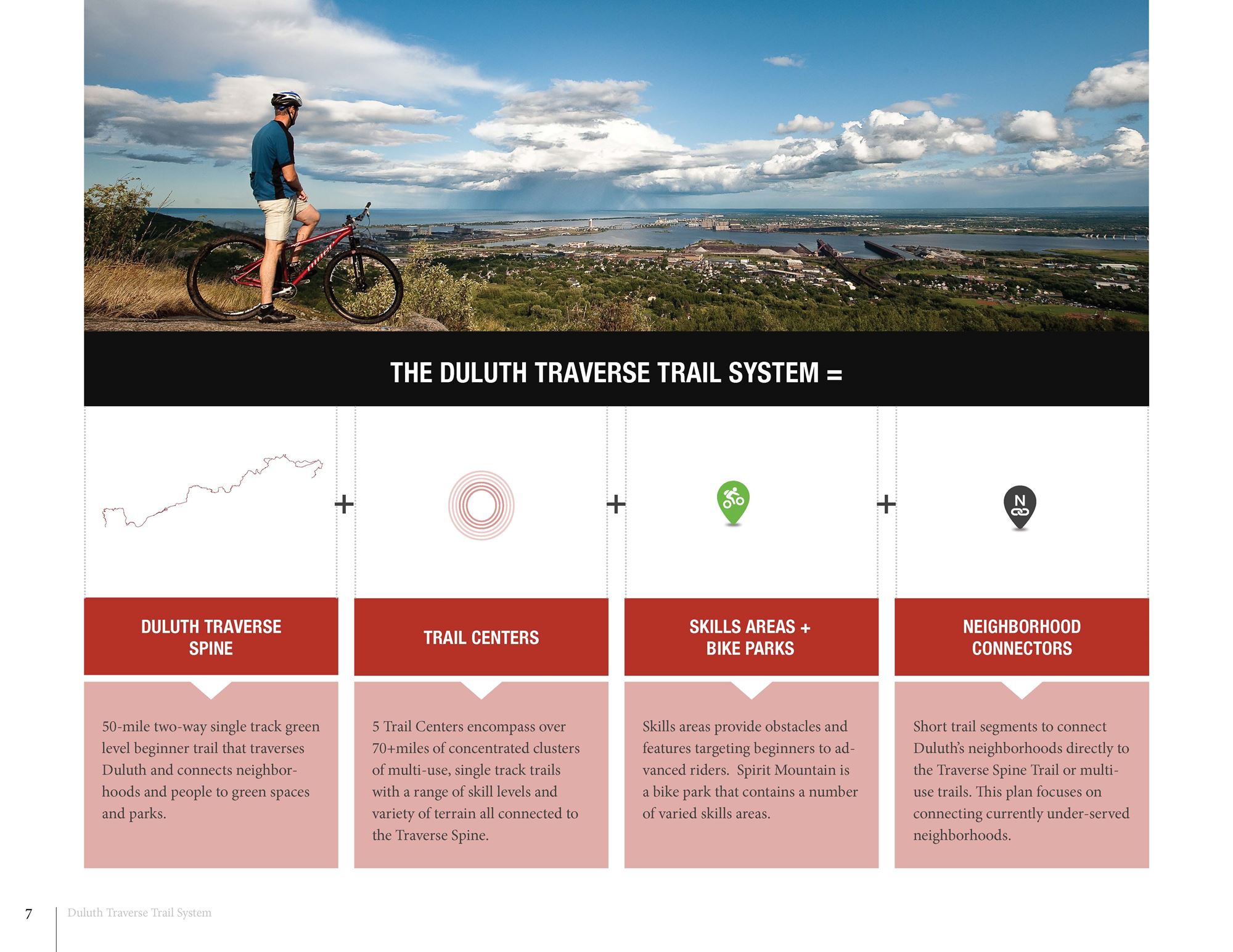 This graphic-rich master plan integrates extensive photography of trail examples while celebrating mountain biking and the City of Duluth’s vibrant landscapes, parks and people.