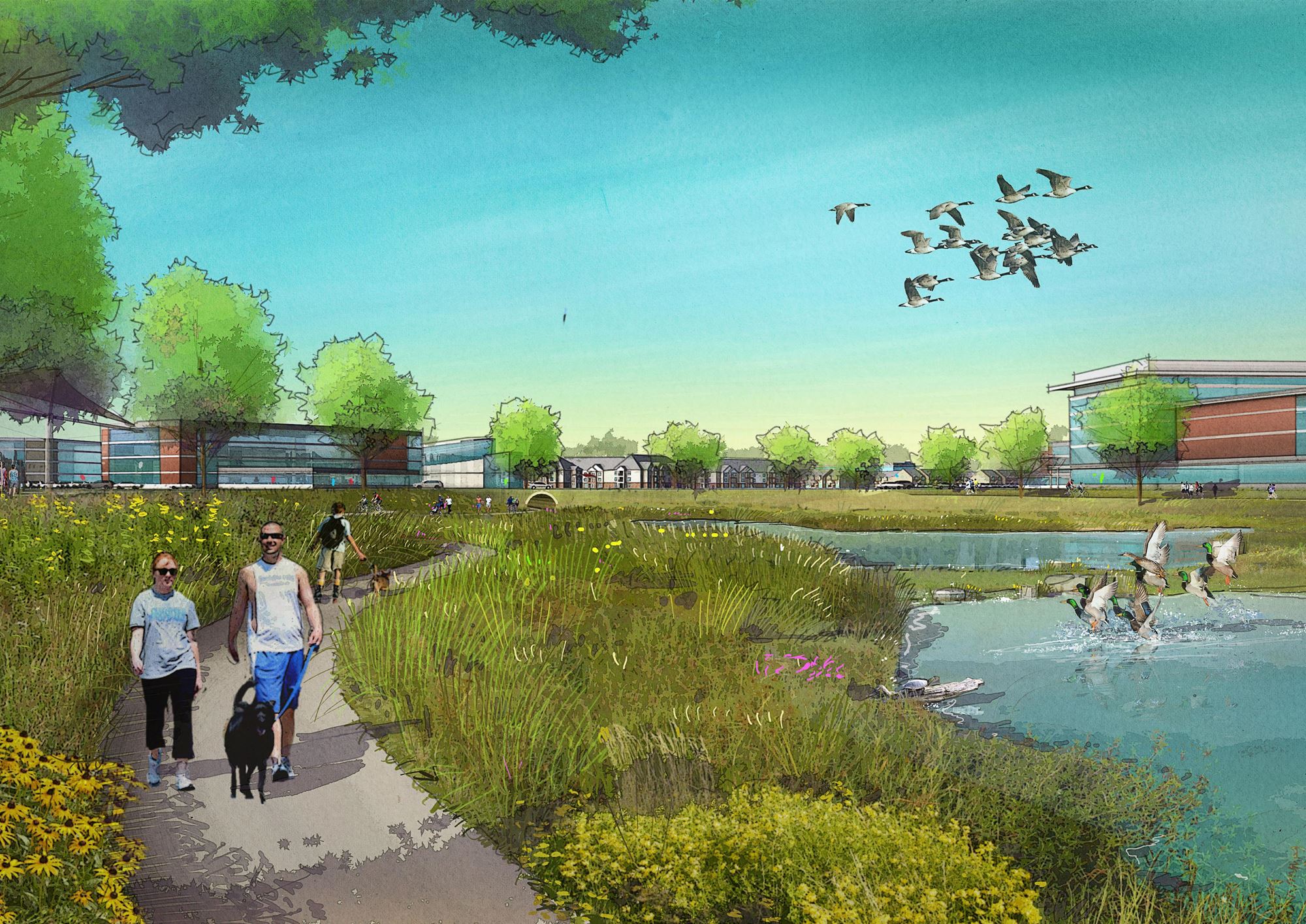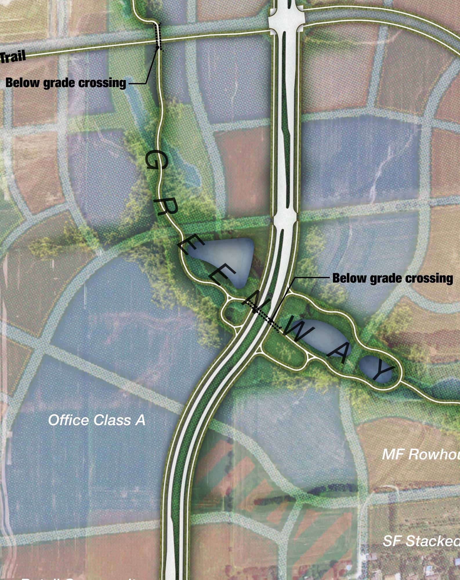 Upon completion of the Master Plan, our team's role continued in multiple projects including the design of an extensive greenway and trails system that functions as a regional stormwater detention facility, a set of comprehensive development design guidelines, and an overlay zoning district supporting future growth.