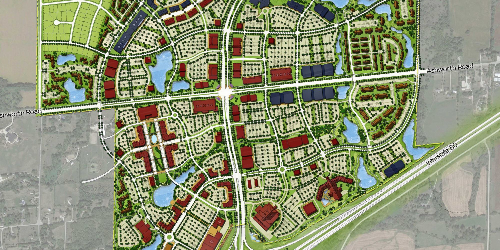 This master plan guides future growth and development of a large residential and commercial mixed-use district within this vital new corridor connecting I-80 into Downtown Waukee.