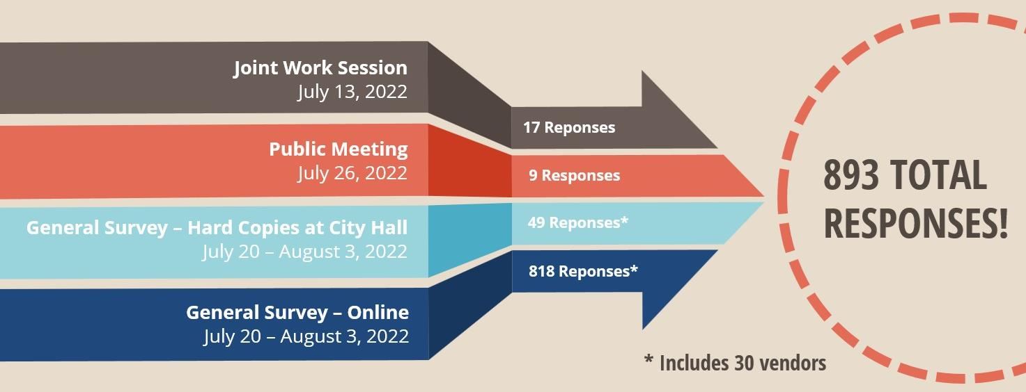 Our team organized and facilitated several public outreach events, met with key stakeholders, and held community meetings to determine what citizens and visitors liked about the existing facility, and what they wanted to see included in a new Farmers Market. We set up booths at the market to engage both vendors and visitors, and developed in-person and online questionnaires which garnered nearly 900 survey responses.