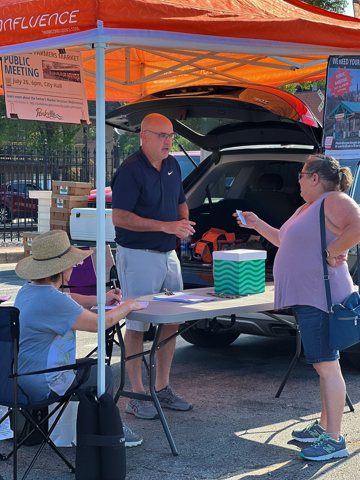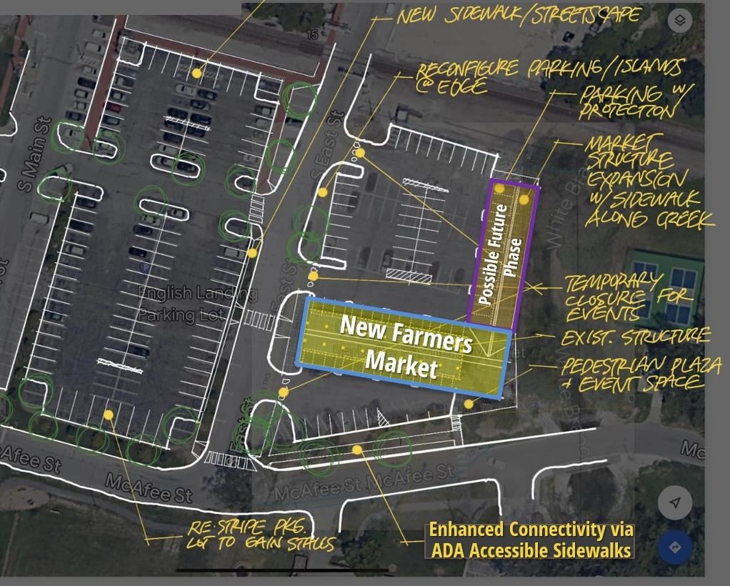 Parkville's Farmers Market structure was damaged by two truck crashes and needed to be replaced, providing an opportunity to engage the community to explore replacement and improvement options.