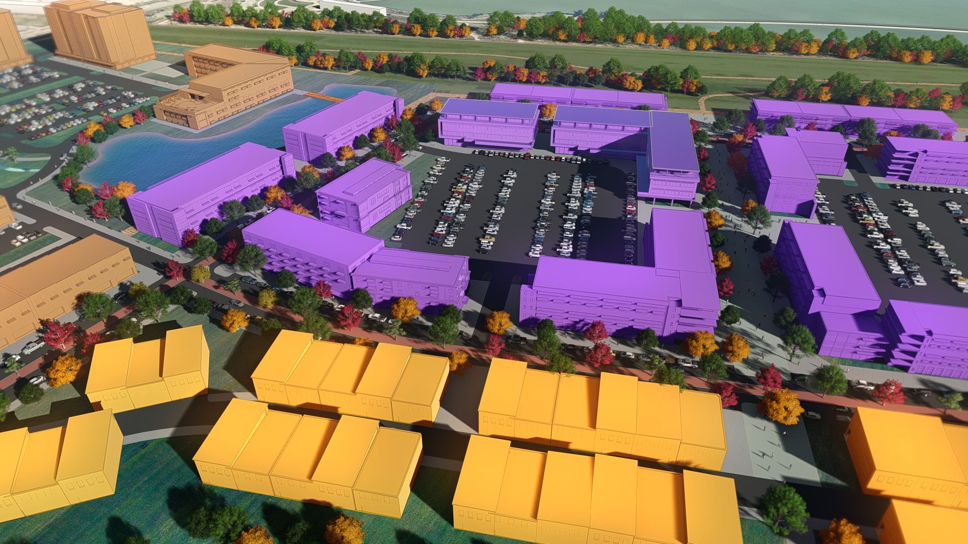 Going beyond a typical land use master plan effort, our team also developed numerous digital model views of the potential redevelopment of this site, including a 3D animated video of the master plan.