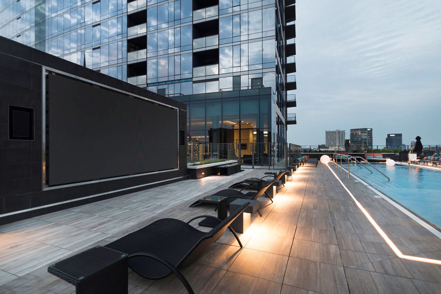 Our team was responsible for the design and detailing of all exterior spaces, including streetscape, amenity deck and green roofs, and was also instrumental in obtaining municipal approvals during the entitlements phase. This included landscape plantings, hardscape, architectural shade structures, the summer kitchen and other grill stations, and providing significant collaborative input into the amenity deck lighting and furnishings.