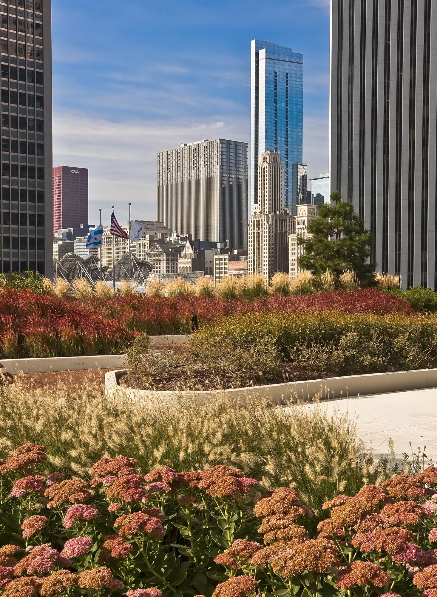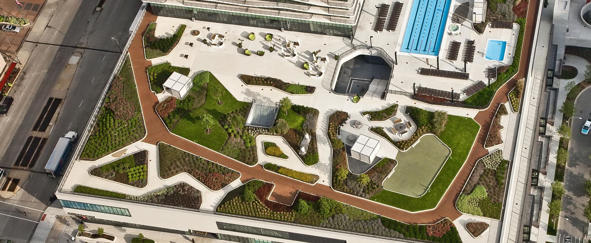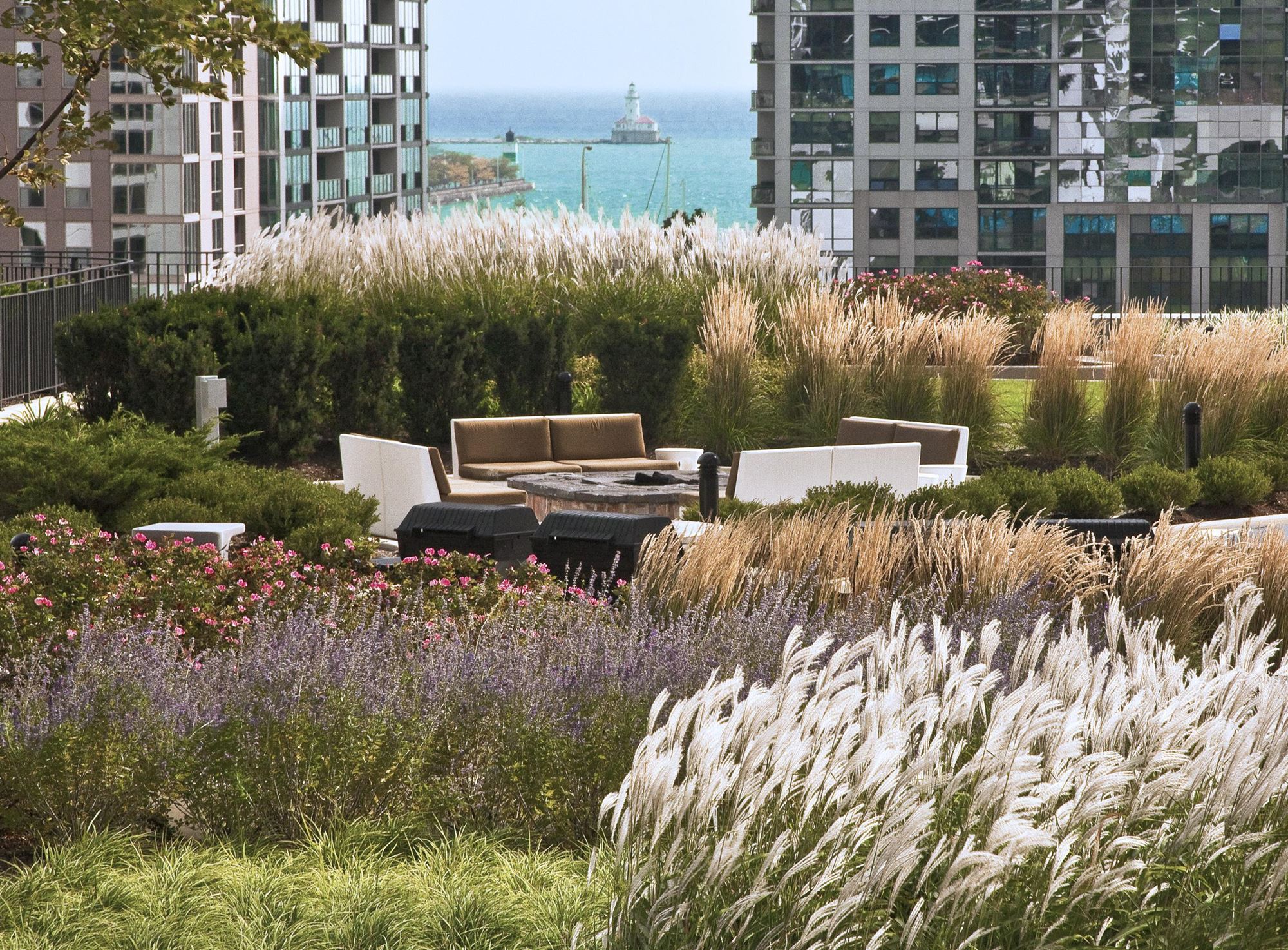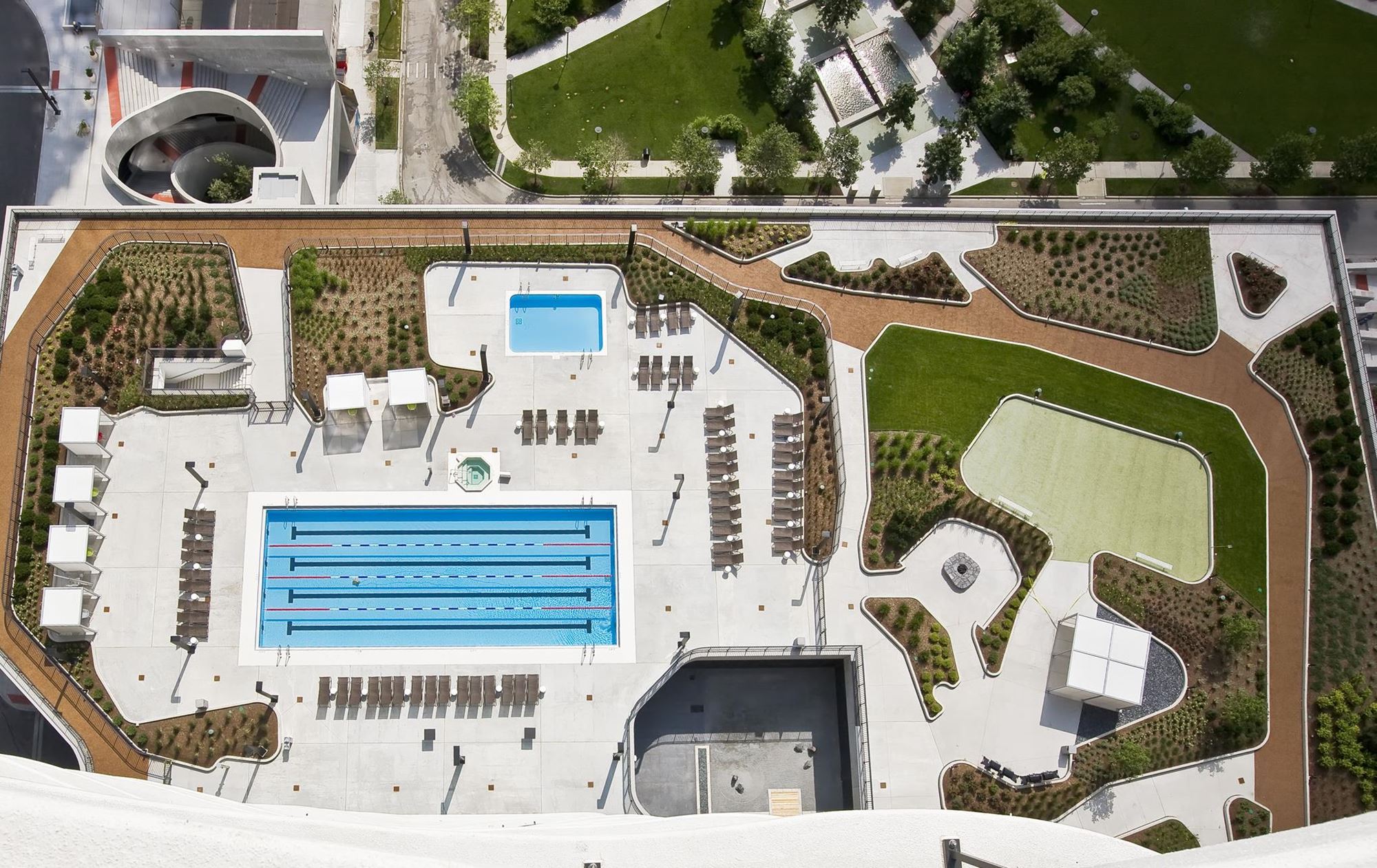 Our team led the design and construction detailing of the amenity deck and the roof garden spaces while collaborating closely with a multi-disciplinary team of architects and structural engineers. The sculptural quality of the building facade's vertical topography is recapitulated and transformed in the design of one of Chicago's largest roof gardens.