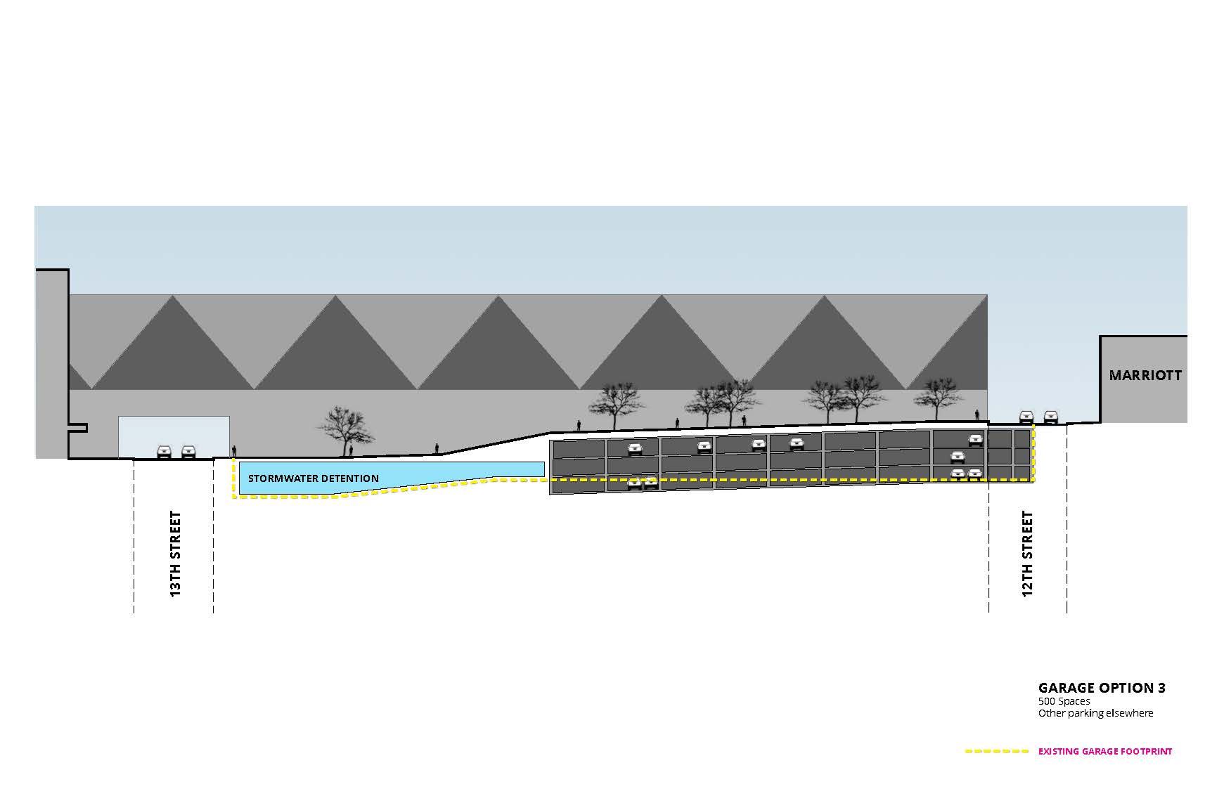 We studied replacing this existing below-grade parking facility and rooftop plaza with a vibrant, highly activated pedestrian-friendly destination park to serve the growing needs of Downtown visitors, convention attendees and residents.