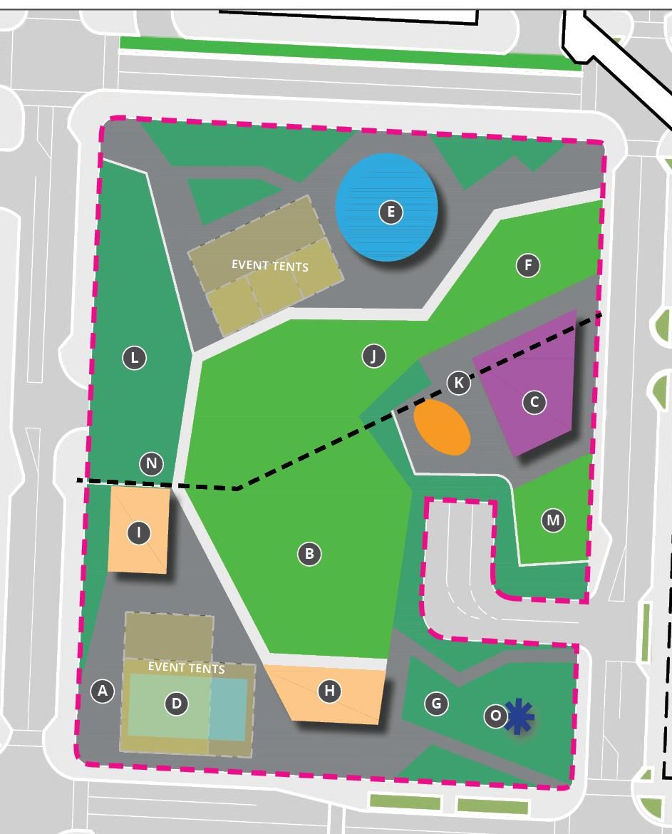 This study also included researching emerging trends in urban parks and plaza design throughout the United States - and analyzing several precedent projects. Recommendations included potential park, plaza, and parking configurations to serve daily use, with flexibility to host numerous events and festivals. It also included innovative opportunities to address sustainable stormwater solutions to benefit the surrounding Downtown area.
