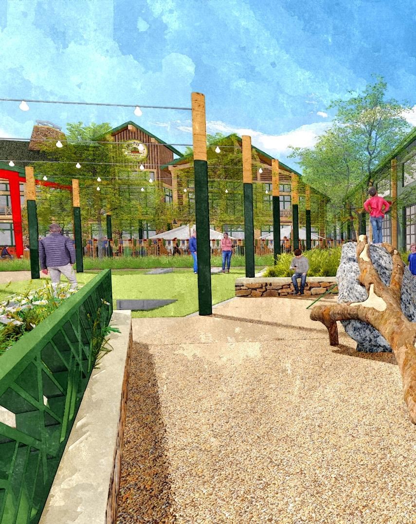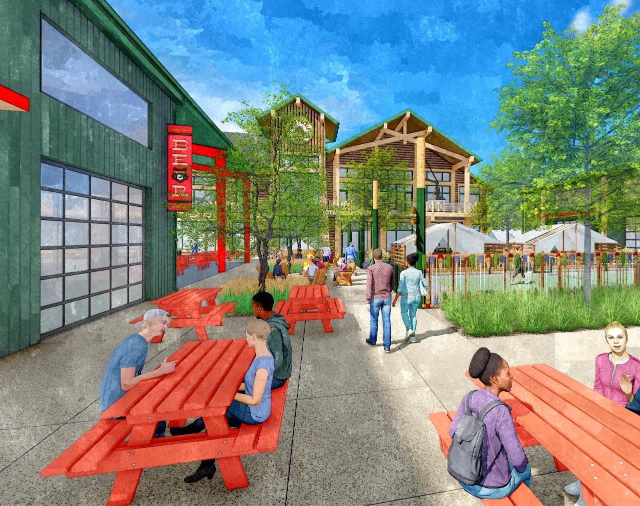 The Centennial location also serves as the flagship for the brand, including more indoor court spaces, a larger yard area, and a more expansive lodge entertainment building. This location also includes a ranger station that provides an outdoor pour-my-beer wall featre.