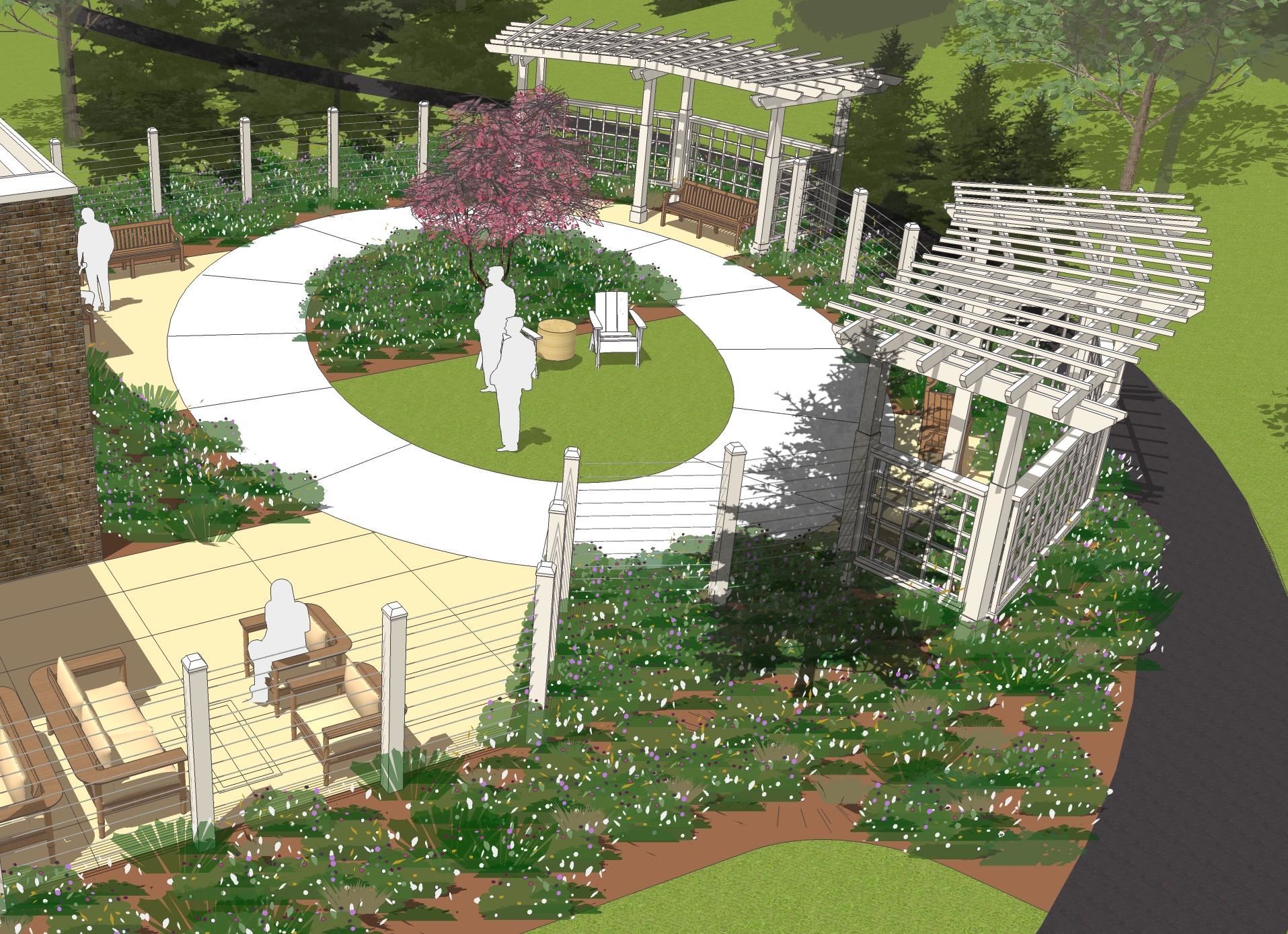The site features a robust planting pallet including brightly colored perennials and over 1.5-acres of native plantings that can be observed by those with limited mobility from within the facility.
