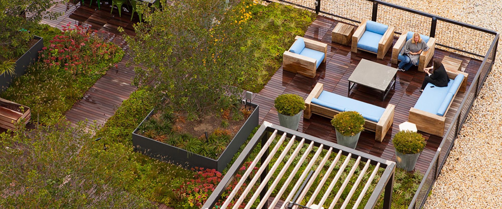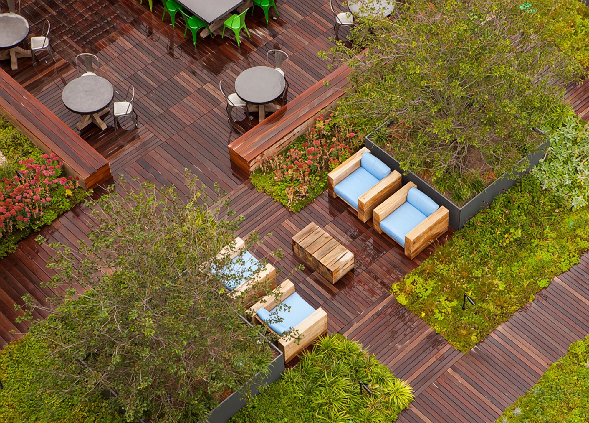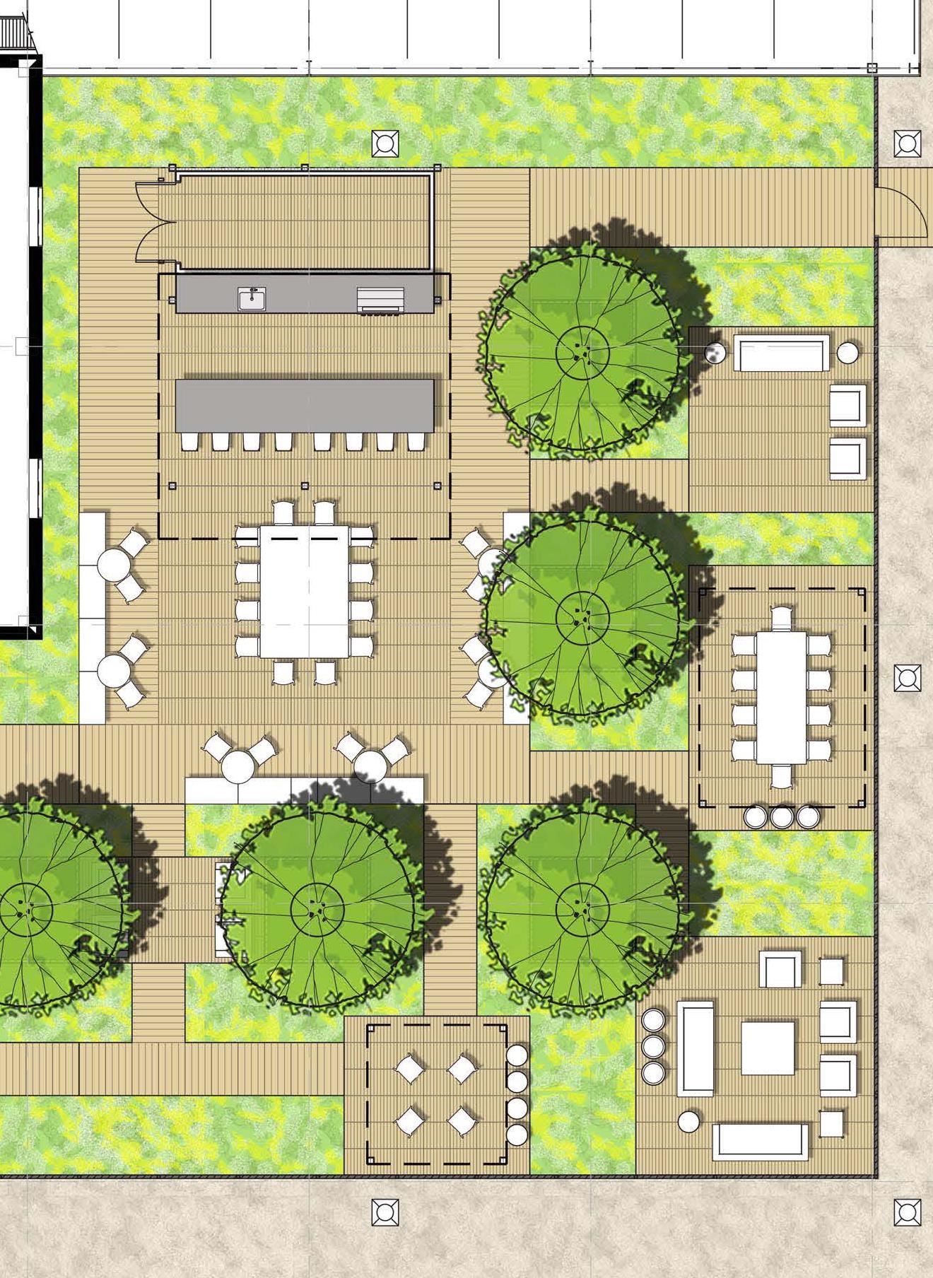 Our design process included developing initial ideas and alternative design concepts for two different rooftop areas for the Owner's consideration. These concepts incorporated varying levels of construction complexity, maintenance requirements, and construction costs - allowing the Owner to select a preferred concept and location that met their use needs, budget, and maintenance abilities.