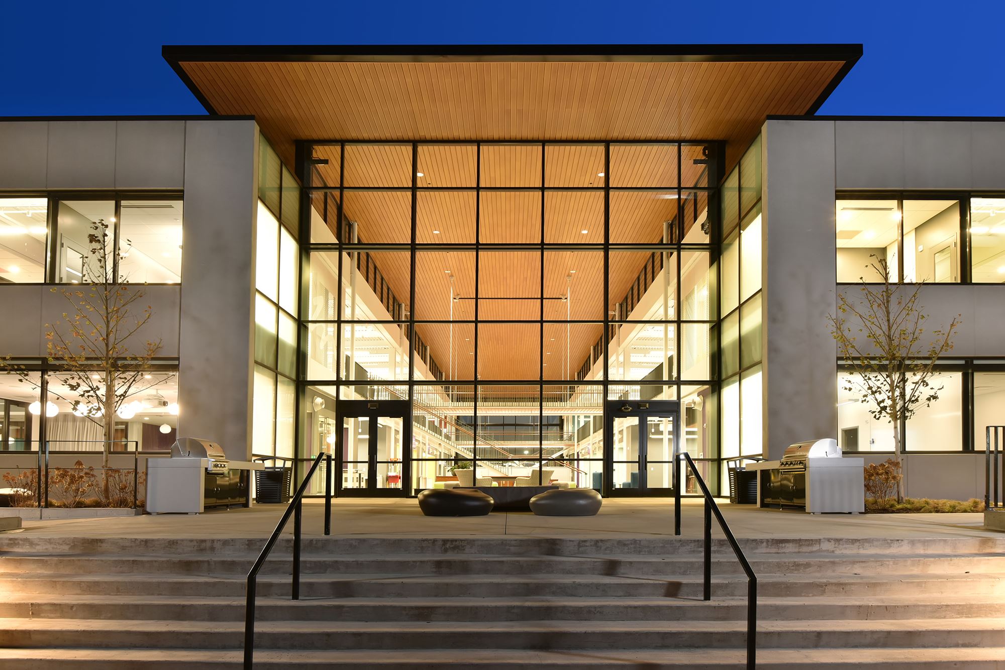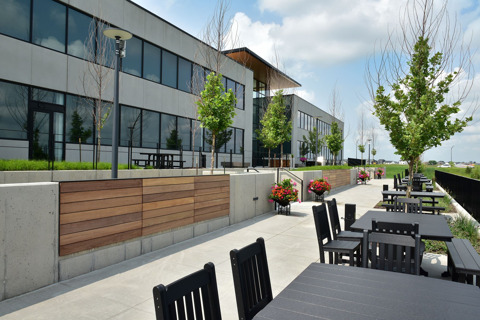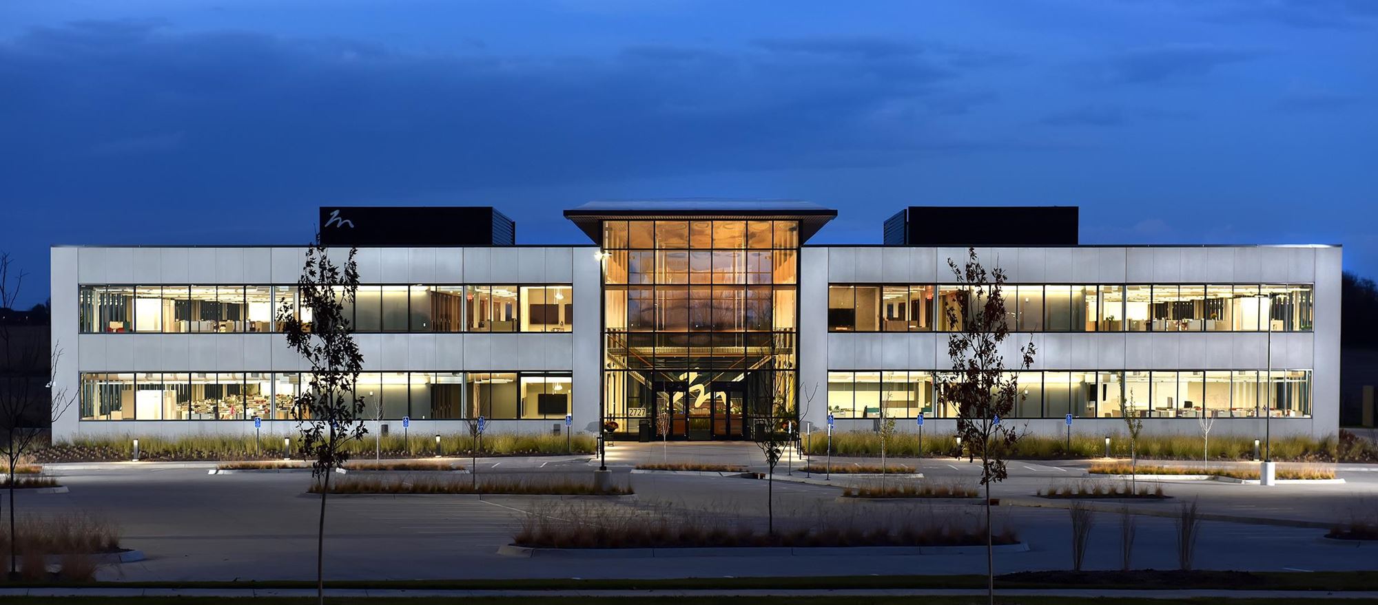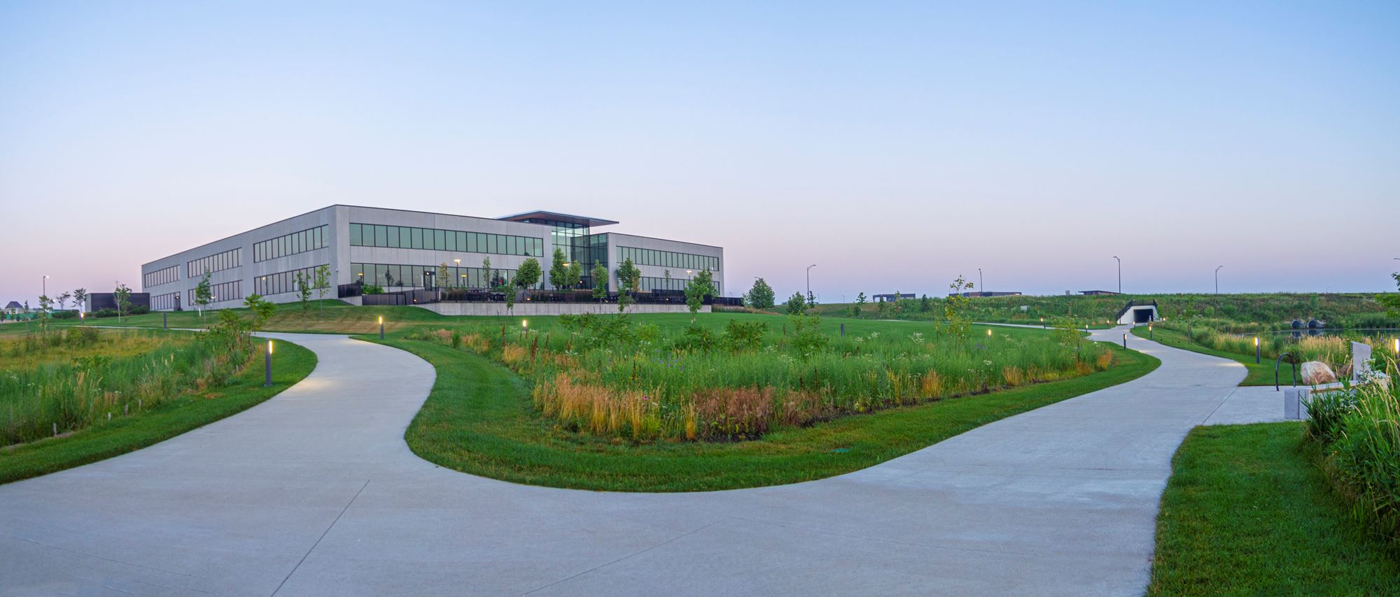 One of the first office buildings to be constructed in the new Kettlestone district, this headquarters facility is a modern addition to the planned mixed-use development.