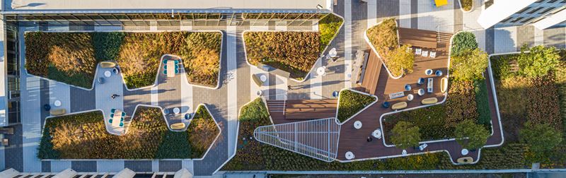 A large terrace was also integrated into the range of amenities provided for employees to take advantage of the scenic vistas and natural surroundings.