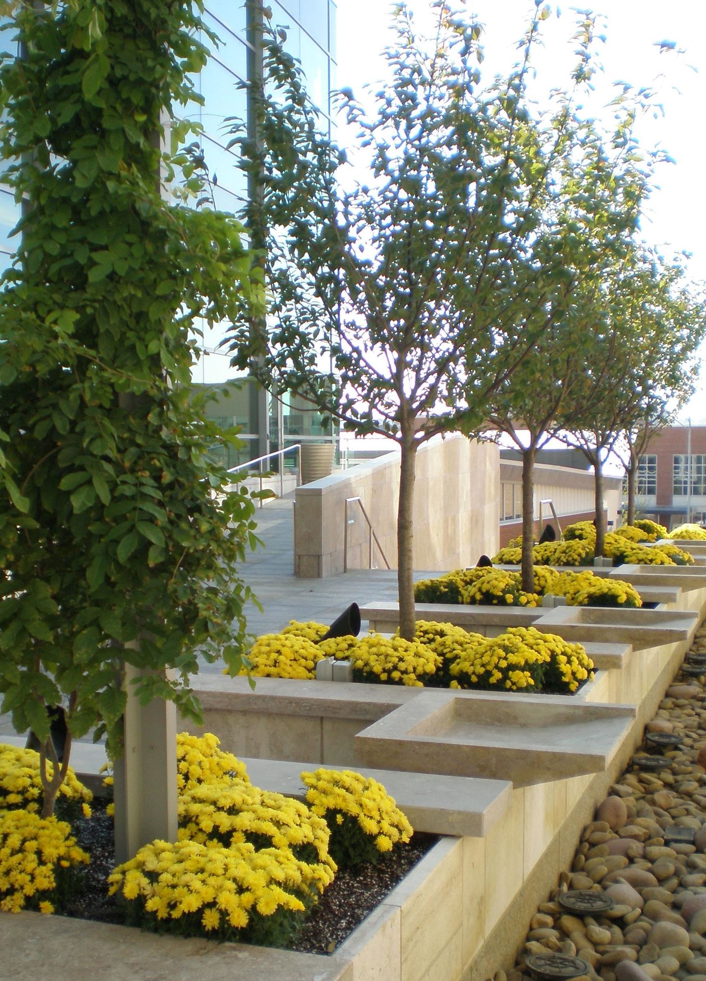 As part of a multi-disciplinary team, Confluence led the site planning and urban design for the new H&R Block corporate headquarters. We crafted a series of pedestrian plaza spaces and streetscape features throughout the site. Surrounded on three sides by a high-rise office building, a theater for performing arts, and a training and dining facility, the primary courtyard serves as circulation space, casual lunch space and a venue for hosting corporate receptions.