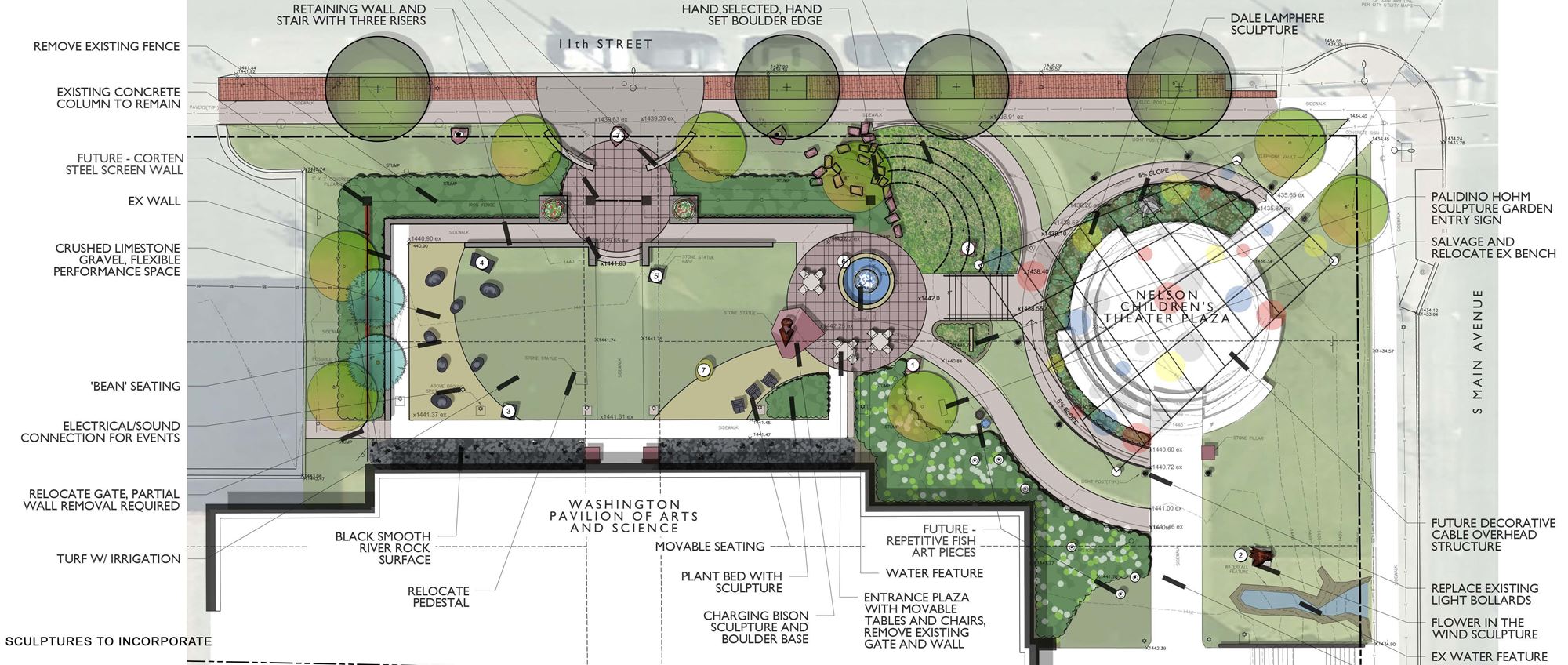 Located adjacent to the Washington Pavilion of Arts and Science in Downtown Sioux Falls, this garden space was kept locked and primarily unaccessible to the public prior to this renovation. Confluence worked collaboratively with the Donor and representatives from the Washington Arts Facility and the City of Sioux Falls to develop a master plan and a new vision for this garden.