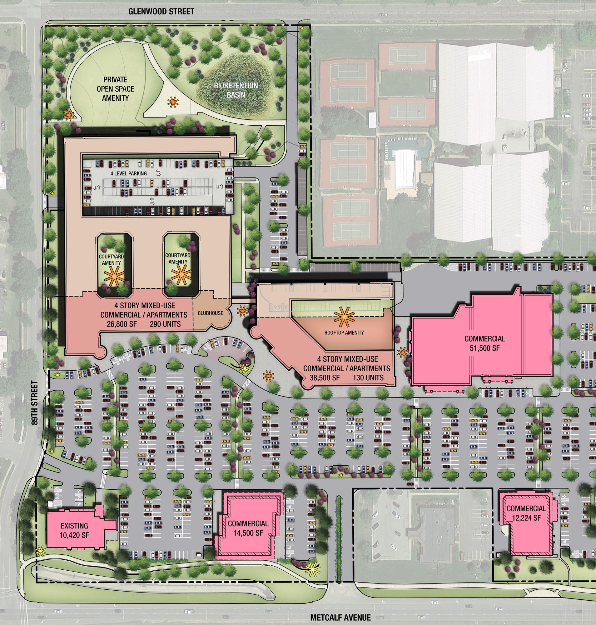 This redevelopment transformed a collection of existing single-story retail buildings into a new multi-story mixed-use development for commercial and residential use.