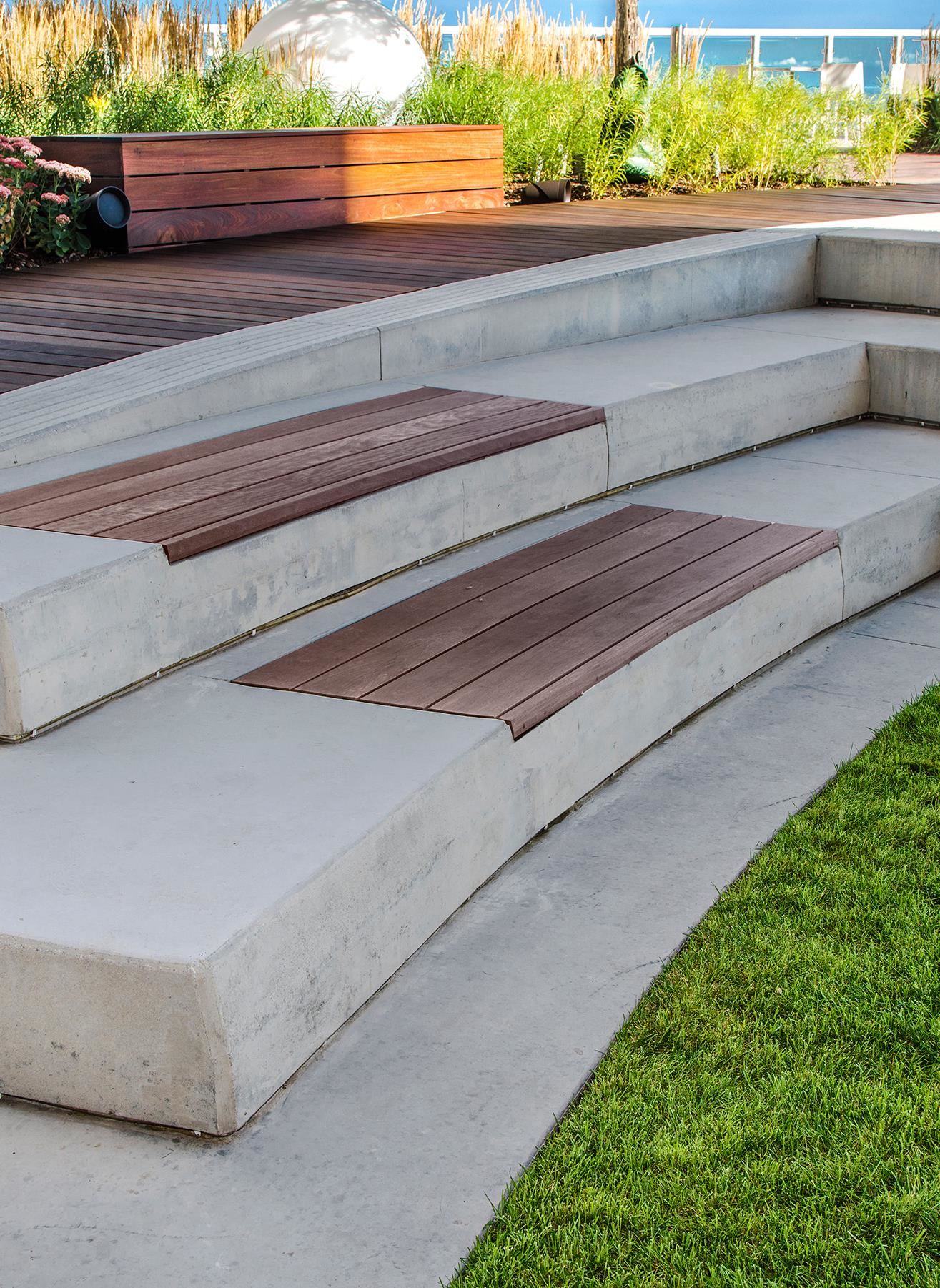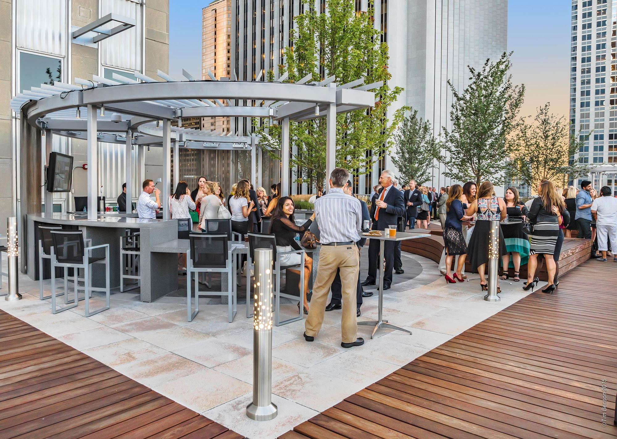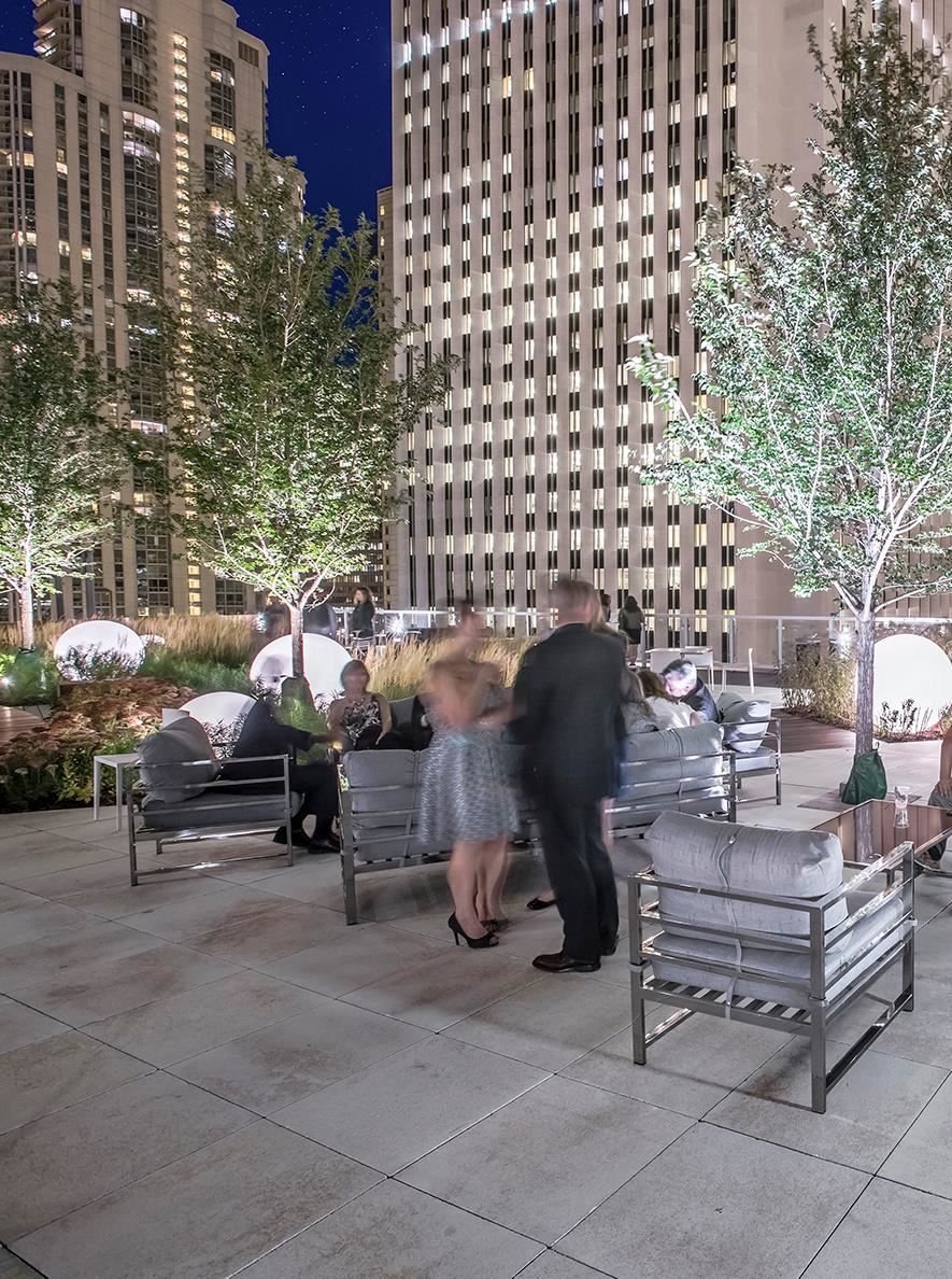 Our team served as the design lead for the roof garden while working collaboratively with the architect and structural engineers to respond to project goals, program requirements, and structural constraints. This new garden provides tenants and visitors with a central lawn space, garden areas, and hardscape design of integrated steps and ramps to access a level above the building parapet to provide unparalleled views of Millennium and Grant Parks and Lake Michigan.