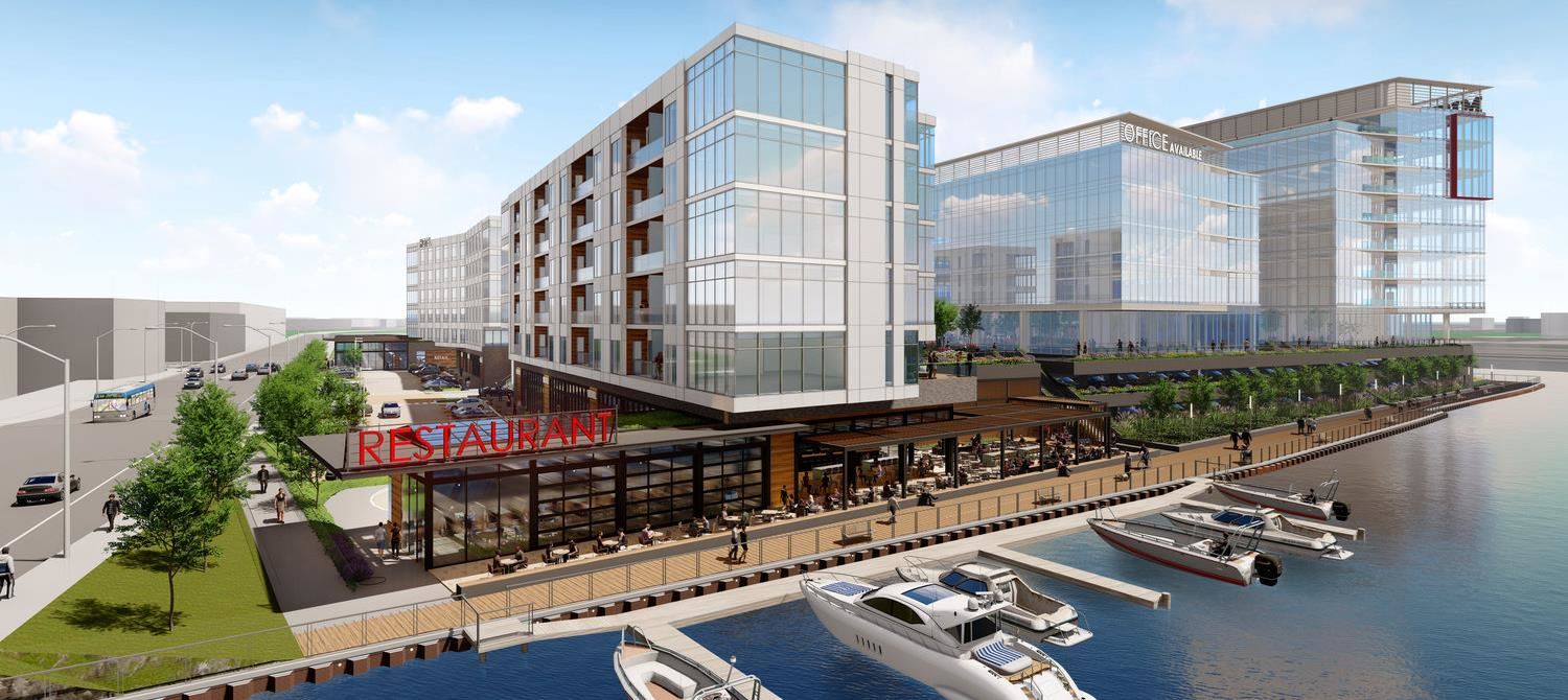 Situated on the southern shore of a bend of the Kinnickinnic River in Milwaukee’s Harbor District, this project is being developed in two phases. Phase one has been completed, consisting of an 8-story Michels Corporation office building with support retail, parking and richly amenitized pedestrian plaza spaces built atop structure. Confluence provided complete landscape architecture services for the site and the rooftop amenity deck for the Michels building.