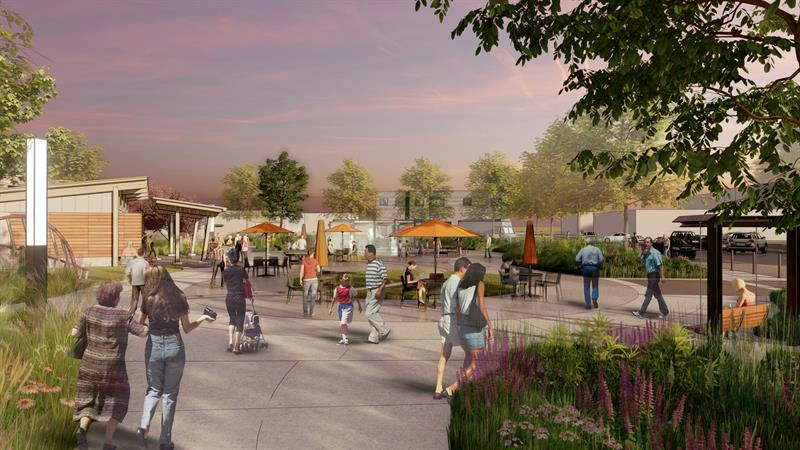 The initial concept for the new 1-acre plaza was unveiled for public comment earlier this year. Throughout a robust engagement period, residents identified water features, space for food trucks, and small festivals – along with the public facilities to support them – as top priorities.