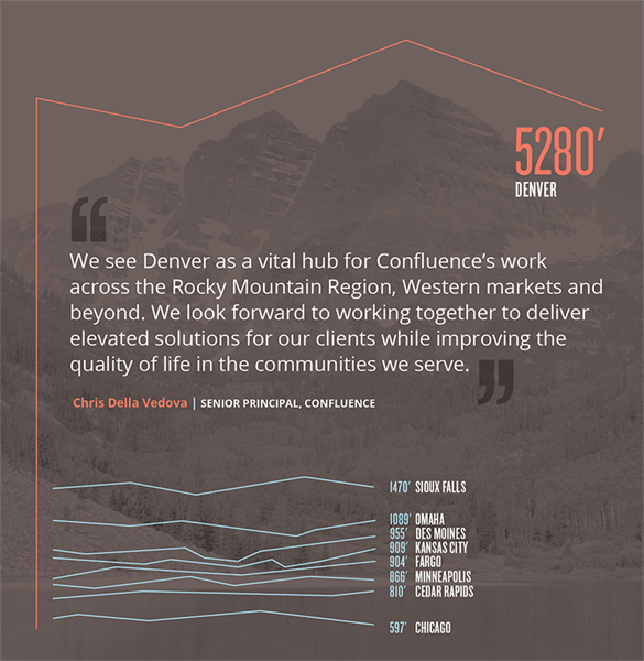 Confluence heightens their capabilities with the acquisition of studioINSITE in Denver, Colorado. With studioINSITE comes a talented team with a 20-year legacy of creating meaningful design and memorable places. Beyond the ideal alignment of our services, our teams share a passion for authentic placemaking and a belief in the power of collaborative problem-solving.