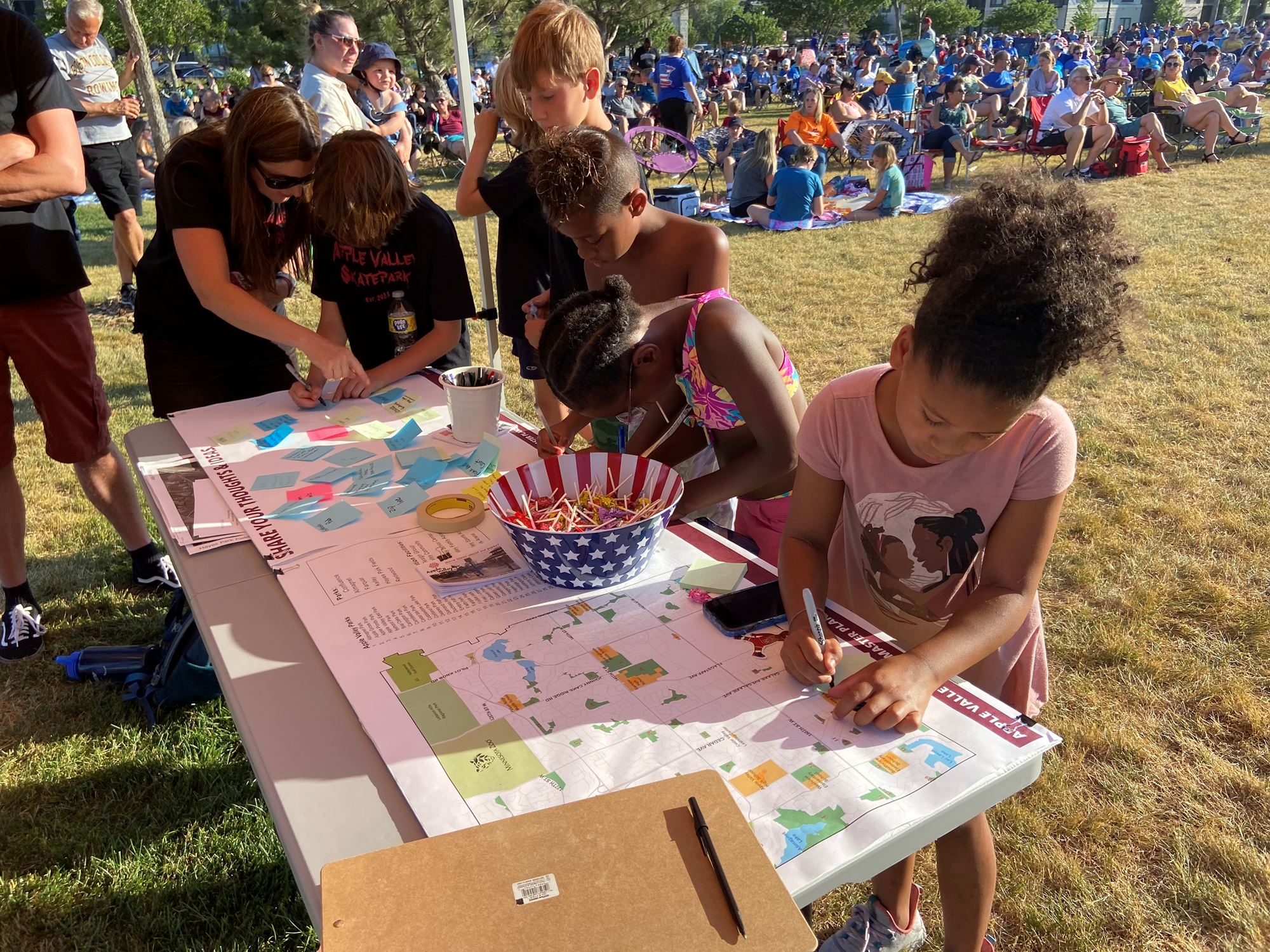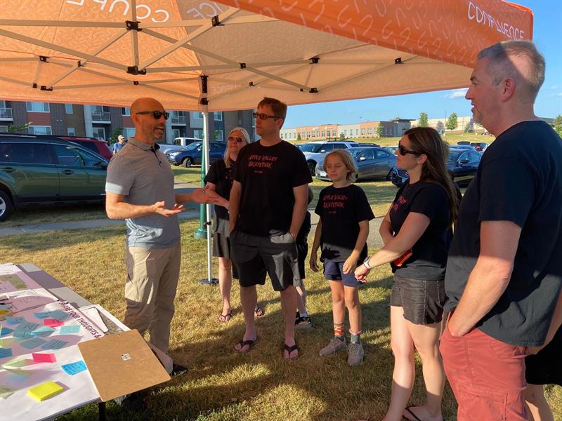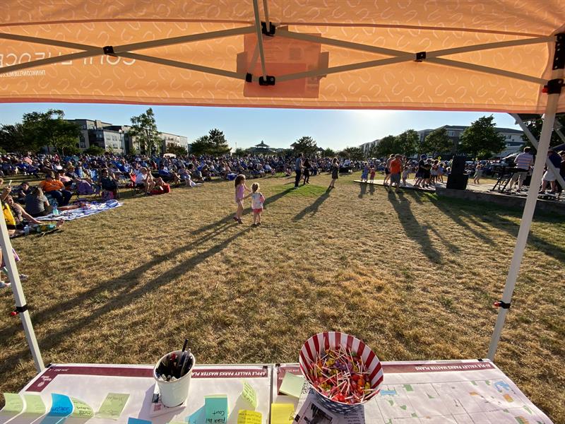 Confluence is preparing park master plans for the City of Apple Valley, Minnesota to raise awareness for a referendum in 2023 to pay for park updates and deferred maintenance. The engagement includes reaching out to the public to see what they like, dislike and want to see added to the parks. The event was at Apple Valleys summer concert series kicking off July fourth weekend celebrations.