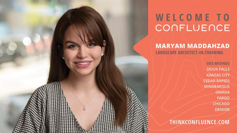 We are excited to welcome Maryam Maddahzad to the Confluence team! After studying Urban Planning, Maryam wanted to explore space-making and design problems not just at large scales but in a variety of environments. As a result, she continued her academic journey in 2019 studying Landscape Architecture at Iowa State University, where she received her MLA degree. She believes gaining back the lost public spaces in cities should be the priority of today's design work. Her favorite type of work is designing smart streetscape using new technologies and designing multi-use urban pocket parks.