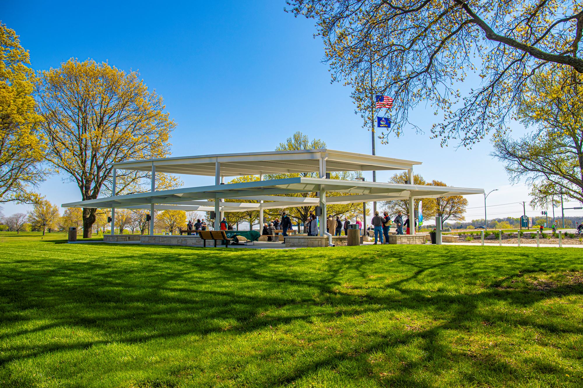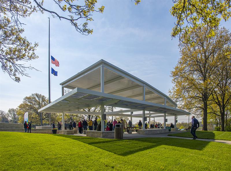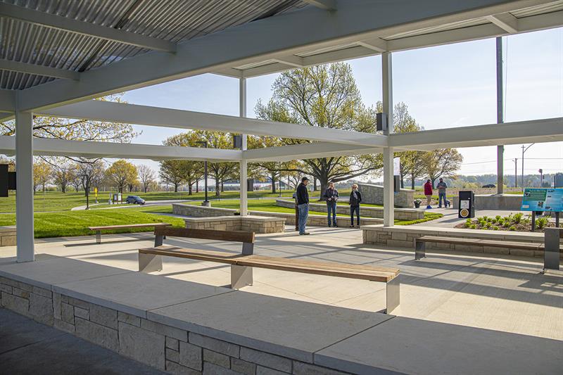 John Barkley, a World War I verteran, served as the Johnson County Parks and Recreation's first superintendent in 1956. This new memorial plaza created in his honor includes a shade pavilion, seating, bike rack and repair station, and more.