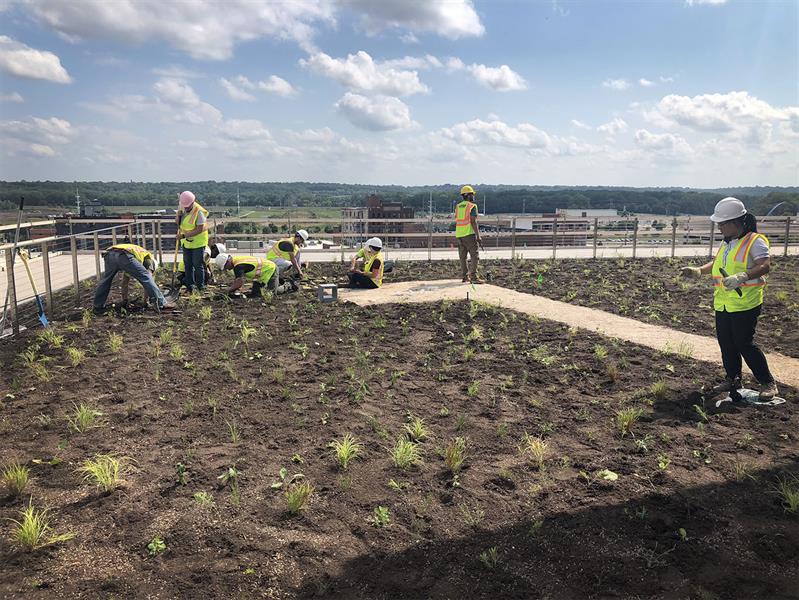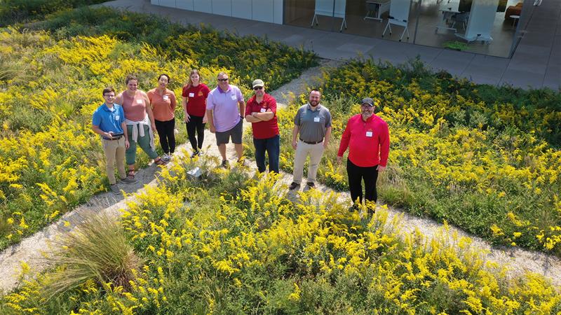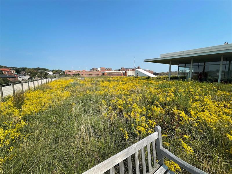 It’s been four years since we planted the 17,000 plugs on the 6th Floor of the Krause Gateway Center building! The half-acre, native prairie green roof, is still the only one in the state of Iowa! It’s a quiet sanctuary, giving stellar views to the horizon, while also being a habitat for pollinators like bats, birds, and bees. The space provides a contemplative and reflective experience, all while lessening the impact of energy usage and water run-off. The Confluence Des Moines office was given permission to come revisit the green roof last week to see growth. The plugs have come a long way, check out the before and after photos!