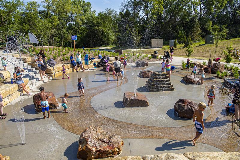 Confluence worked with City staff to design park plan that utilized public engagement and preserved the natural environment of the site. Located in Northwest Shawnee, the park features a treetop playground, hillside slide, and a nature-themed sprayground. Additionally, the park also includes a patio overlook and shelter with a fireplace as well as a 1.38 mile walking trail.